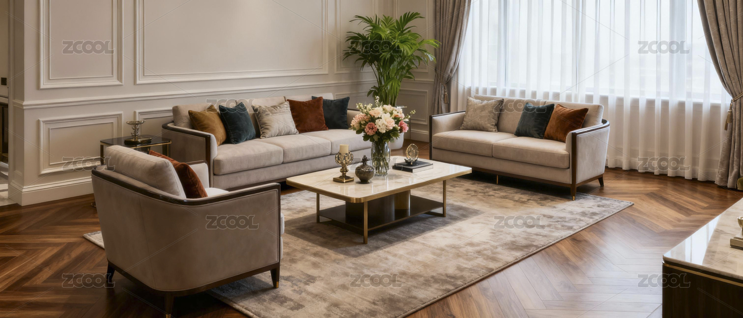 奢华欧式新古典风格客厅起居室装饰装修场景