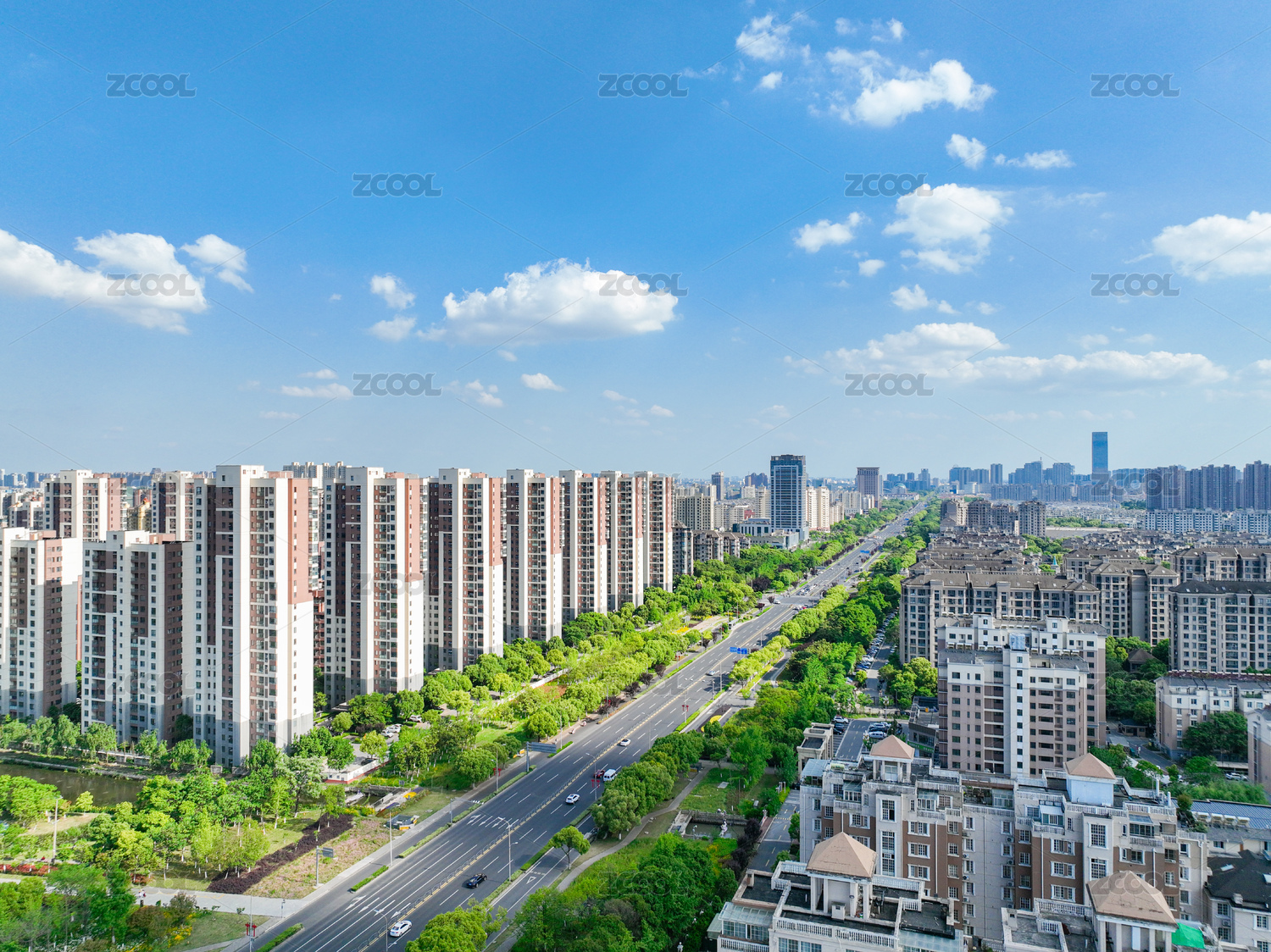航拍,城市,乡村,农村,农田,绿,夏天,道路,工厂,生活区