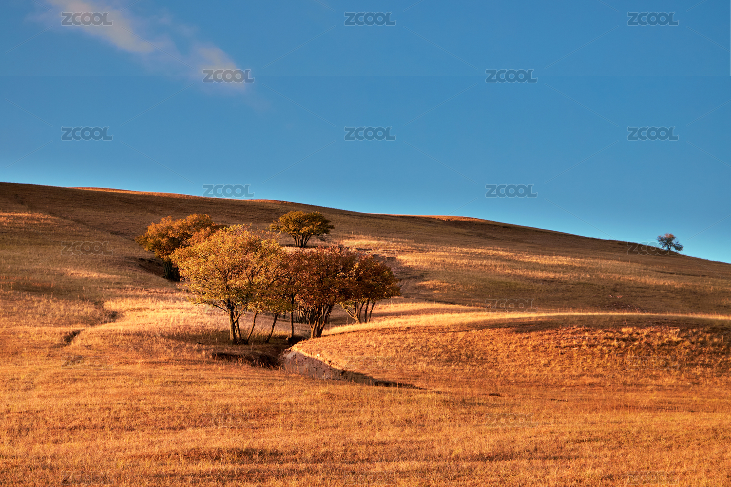 傍晚时分秋季内蒙古自治区西拉沐沦大峡谷里的树木
