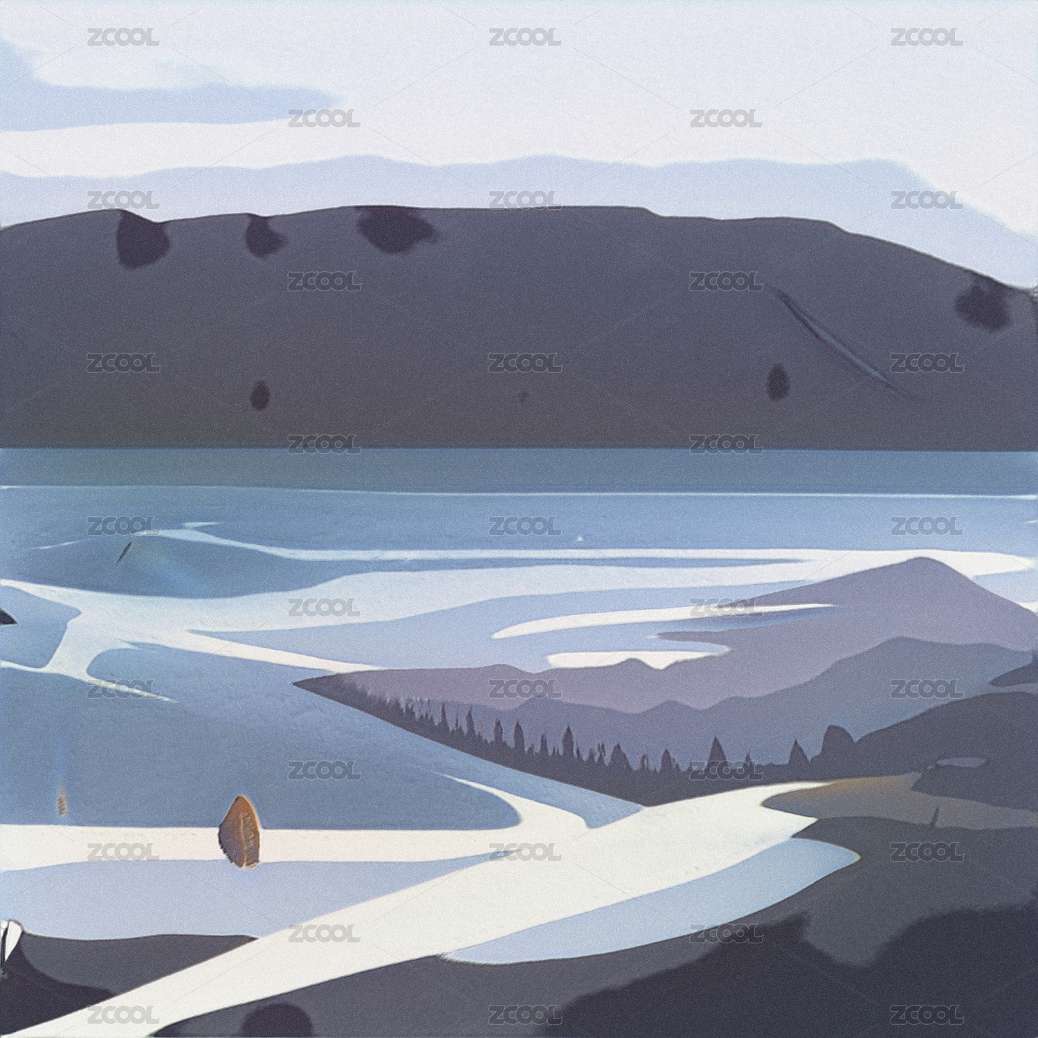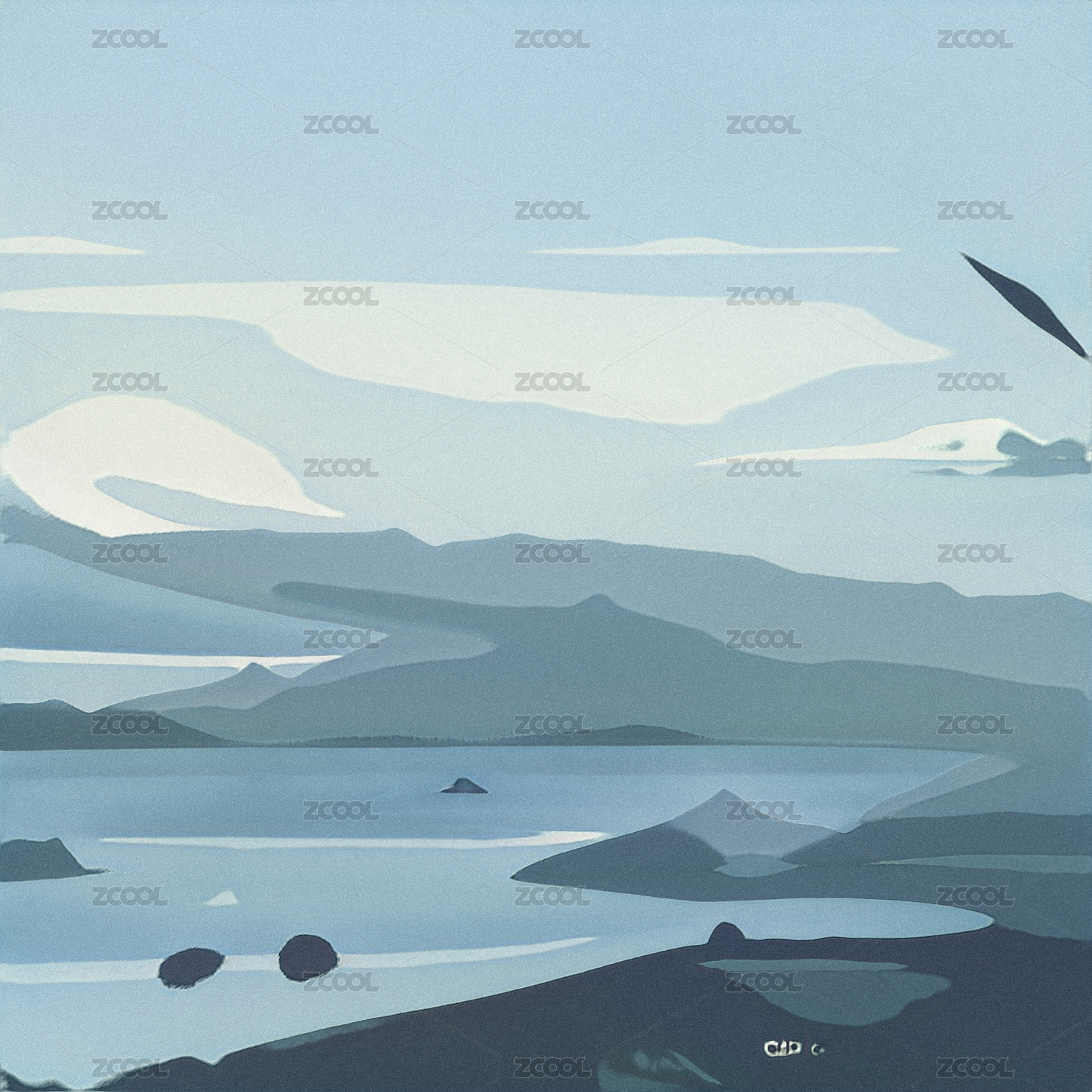 插画,风光,自然,天空,山脉,河流,河,大海,海洋,数目