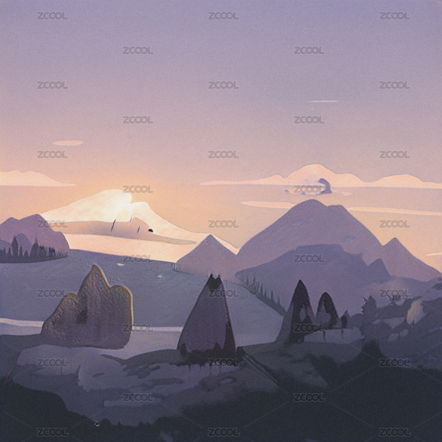 扁平自然风光插画