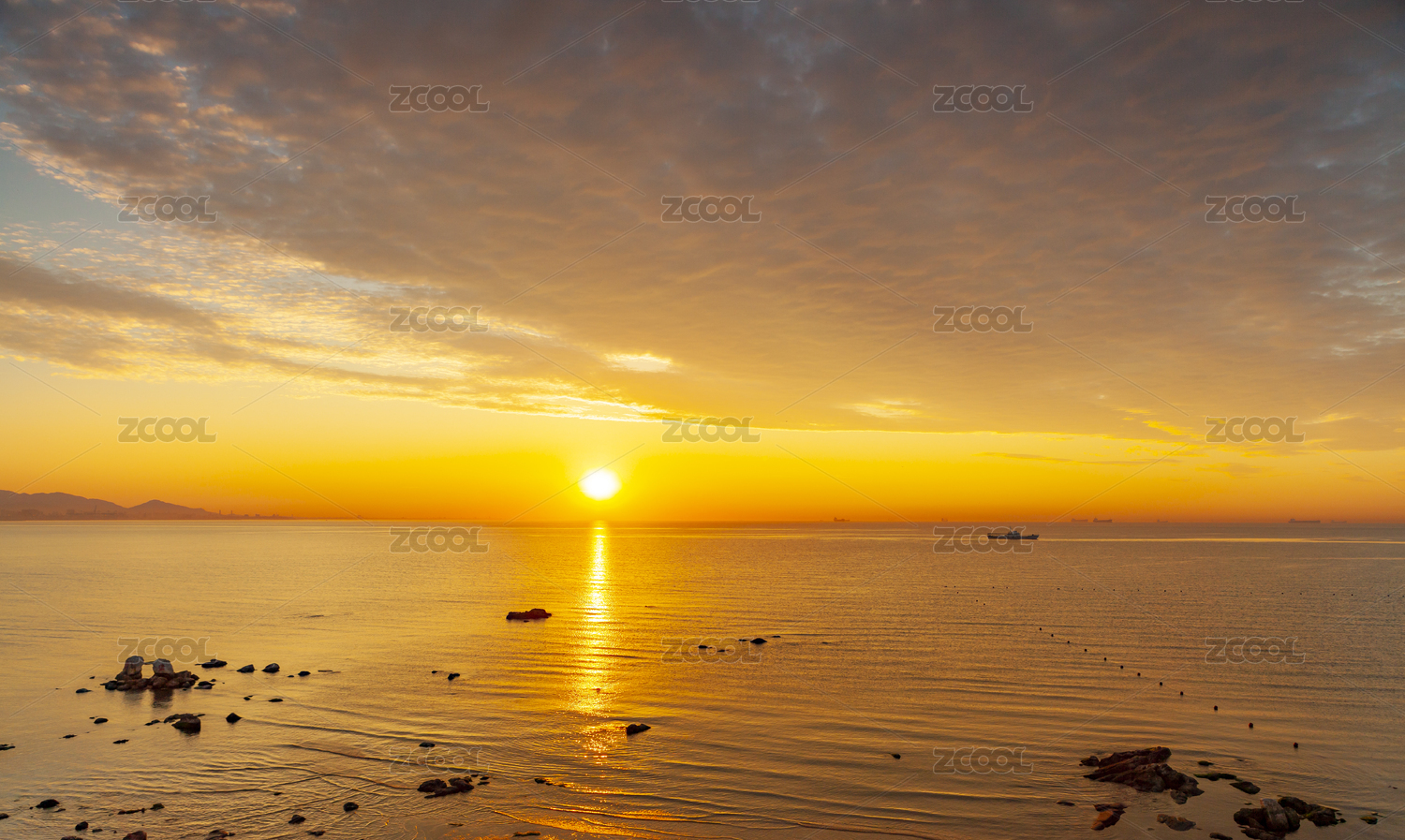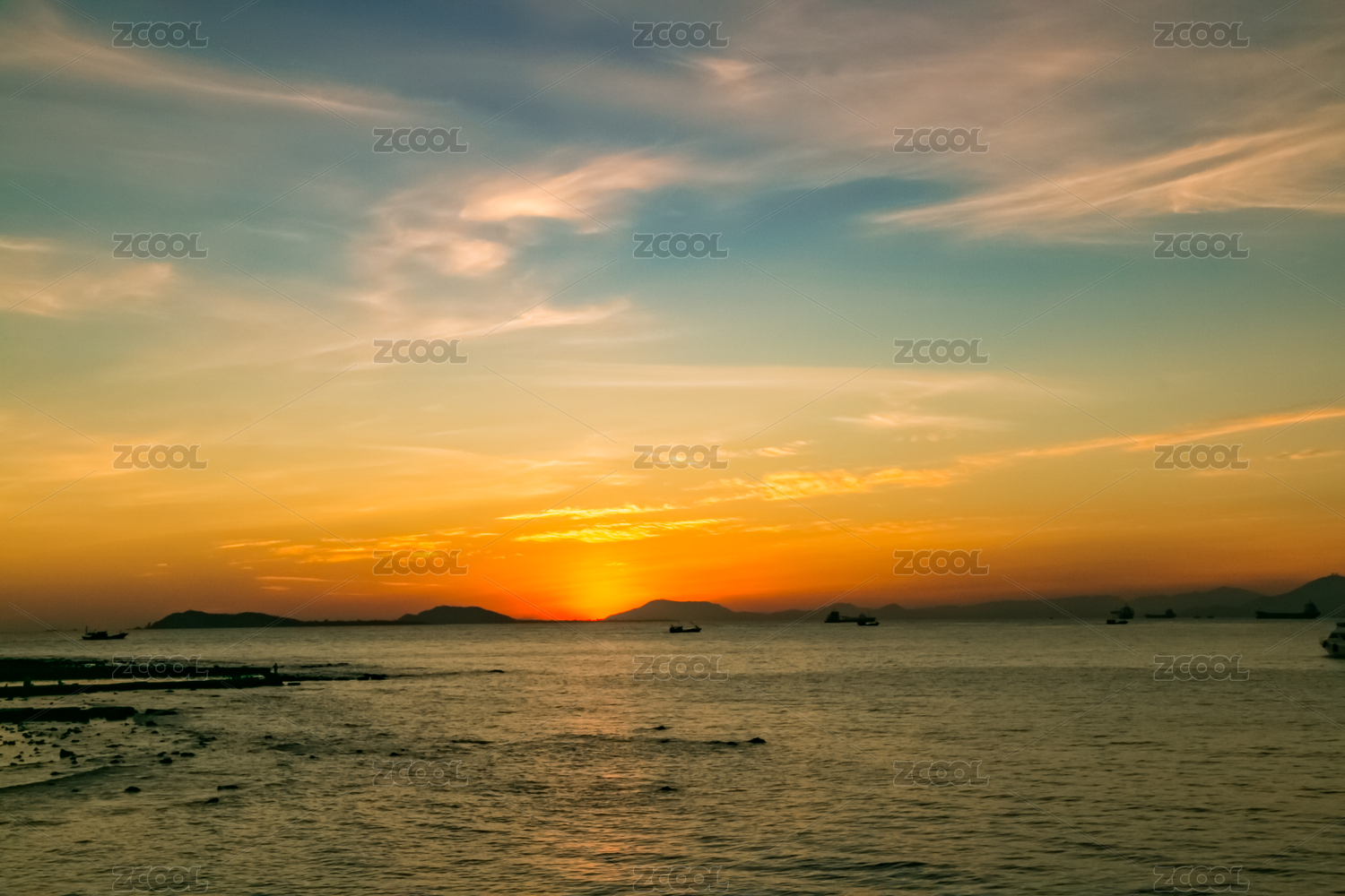中国深圳大鹏半岛南澳广场海上日落夕阳