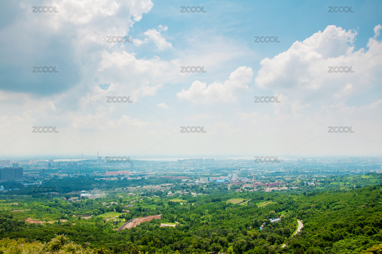 郁郁葱葱的青山俯瞰城市景观的鸟瞰图