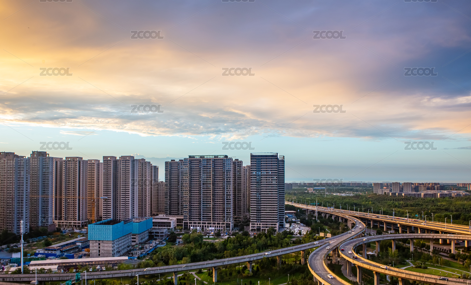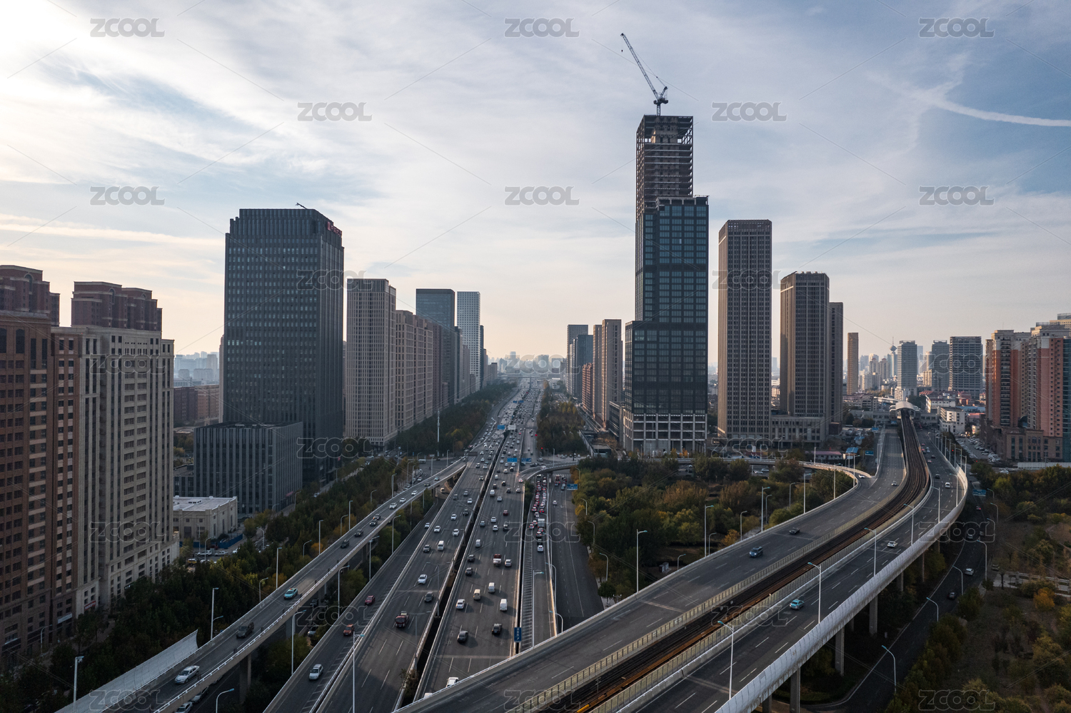 航拍郑州农业路大桥城市快速路高架桥天际线