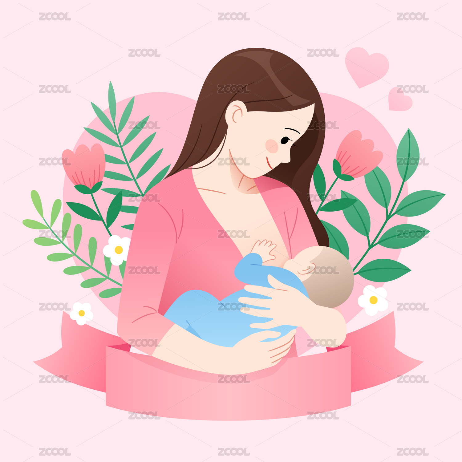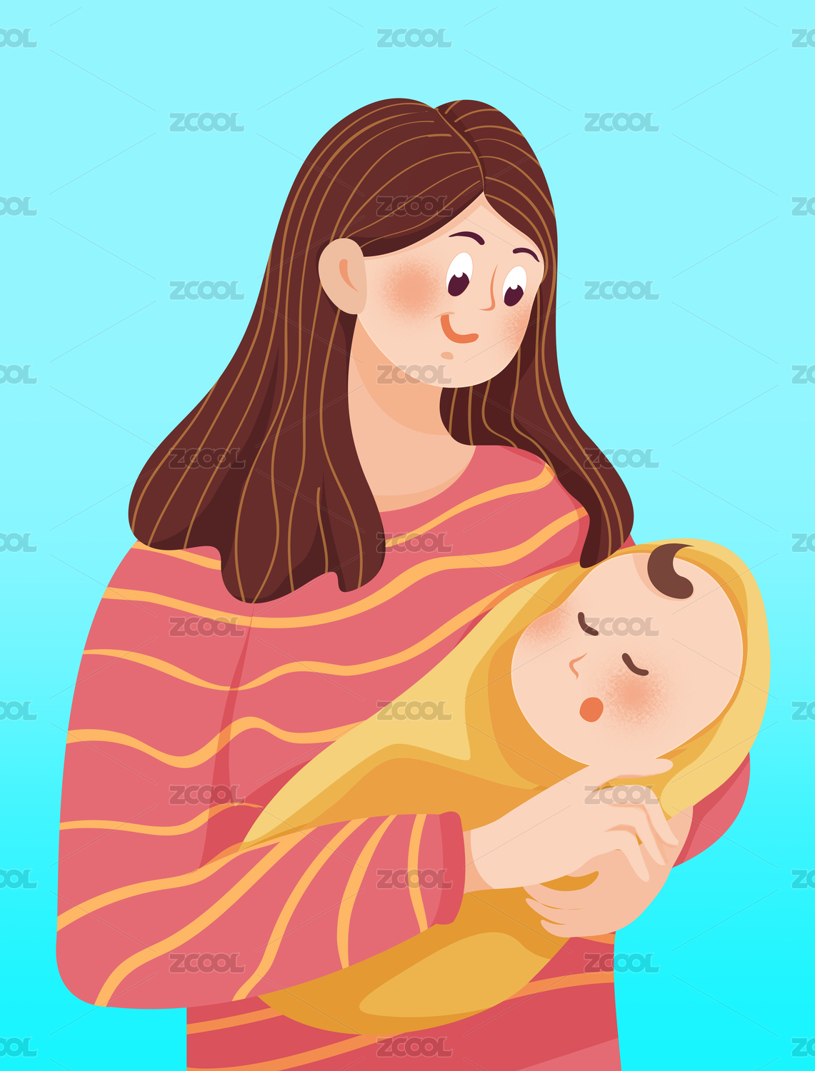母亲节妈妈抱着婴儿萌宝插画矢量图