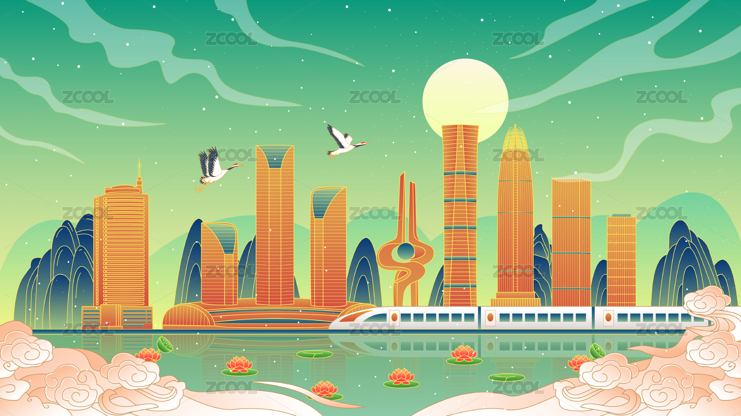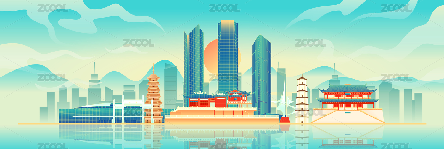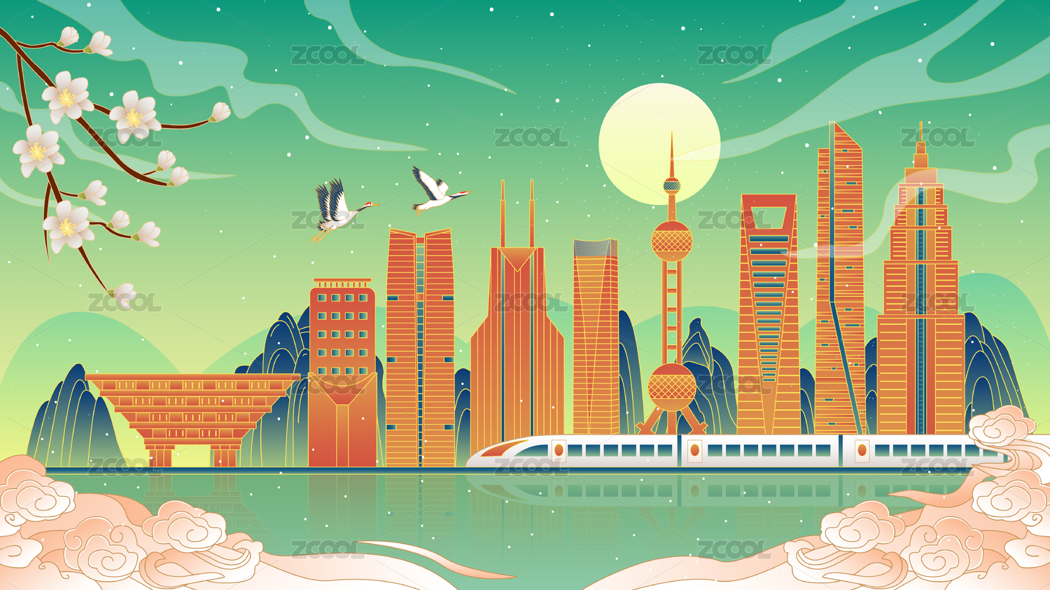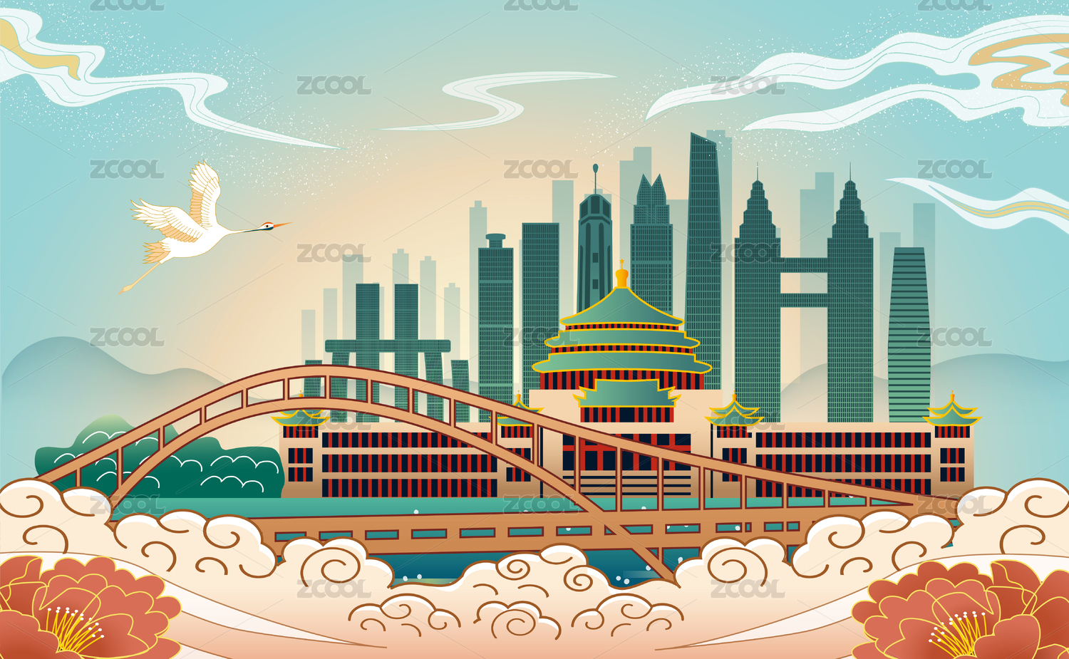 国潮风,著名景点,插画,建筑,城市,国风,中国文化,旅行,旅游,祥云