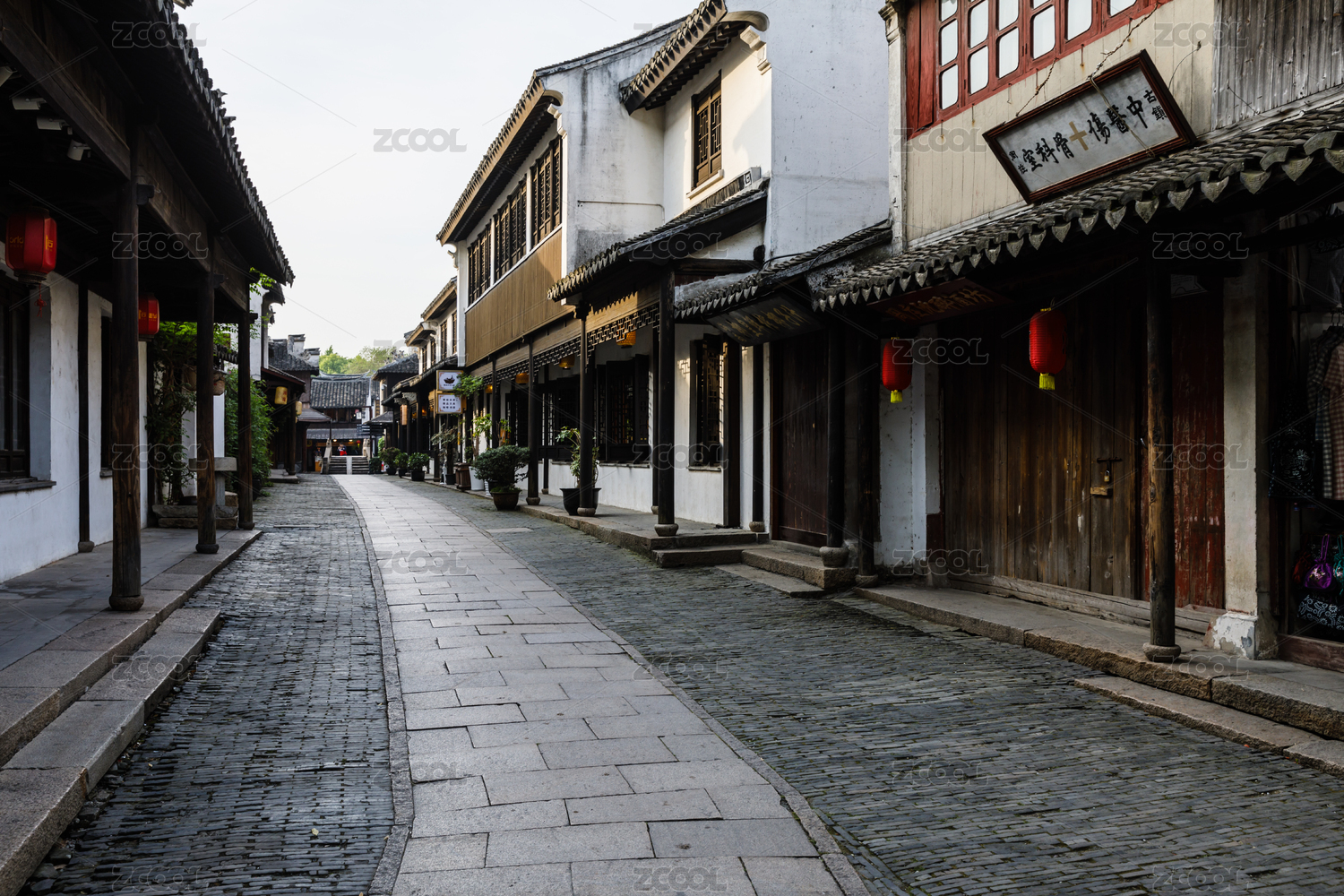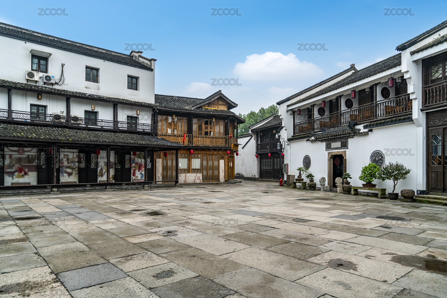 中国江苏苏州张家港凤凰镇恬庄古镇老街天际风光