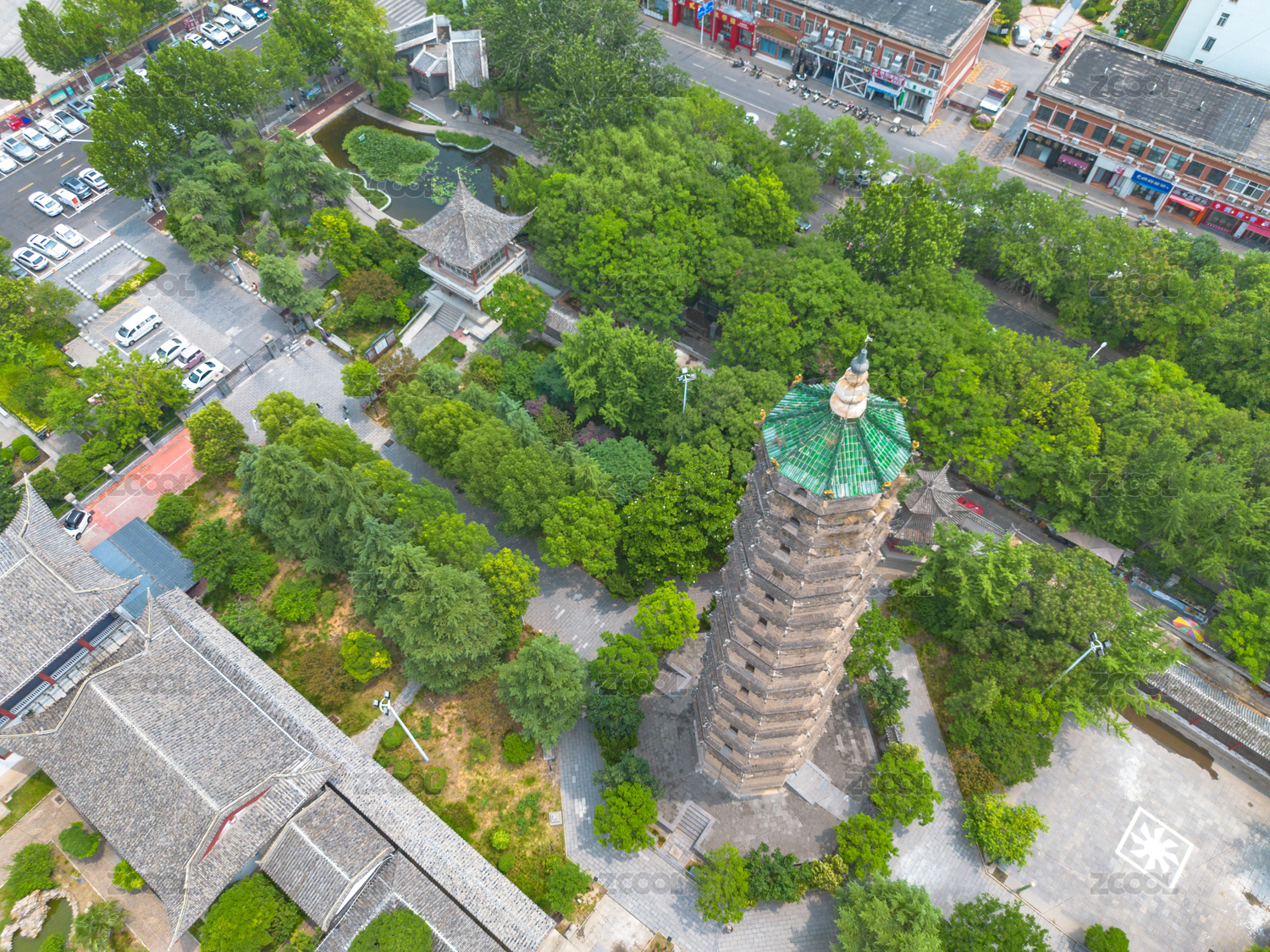 航拍中国西安城市旅游地标建筑景观——小雁塔古建筑