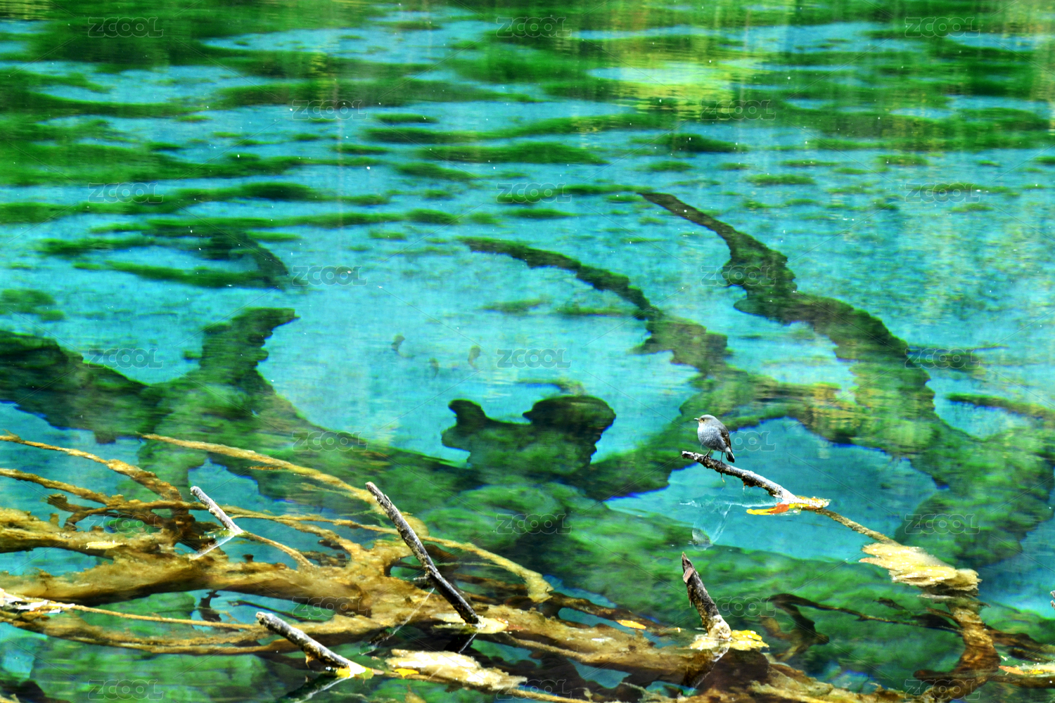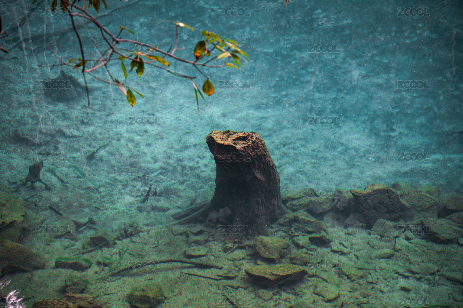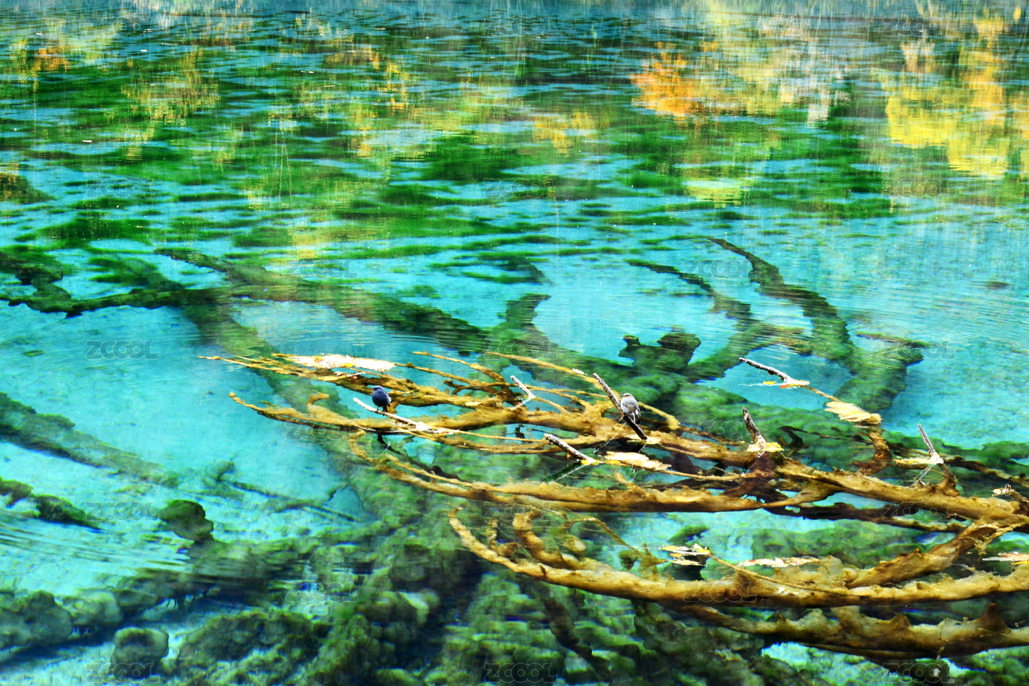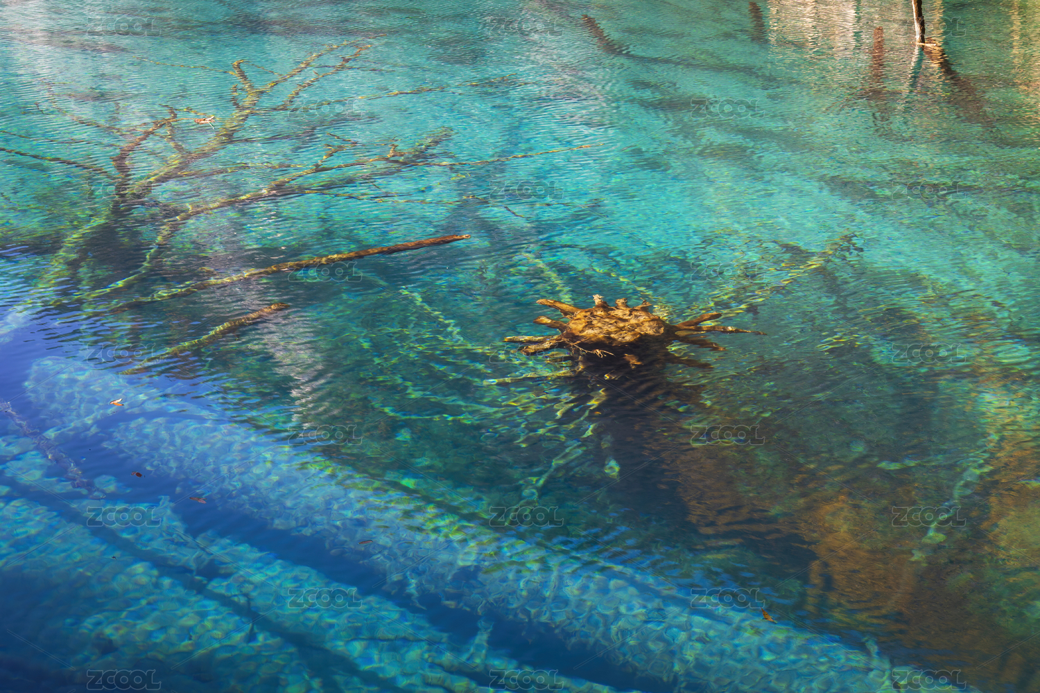 四川省阿坝九寨沟海子孔雀海及湖底的钙化木