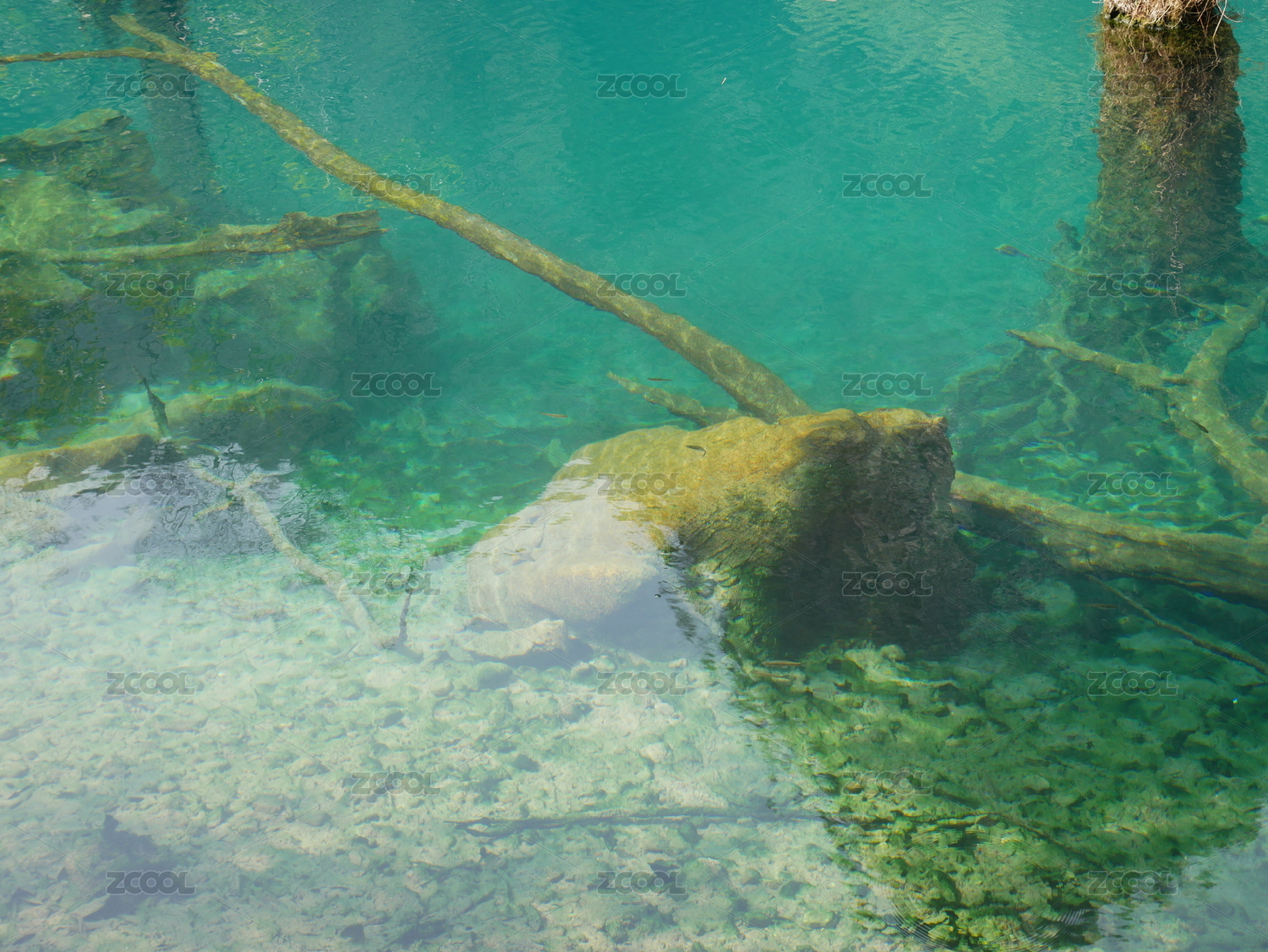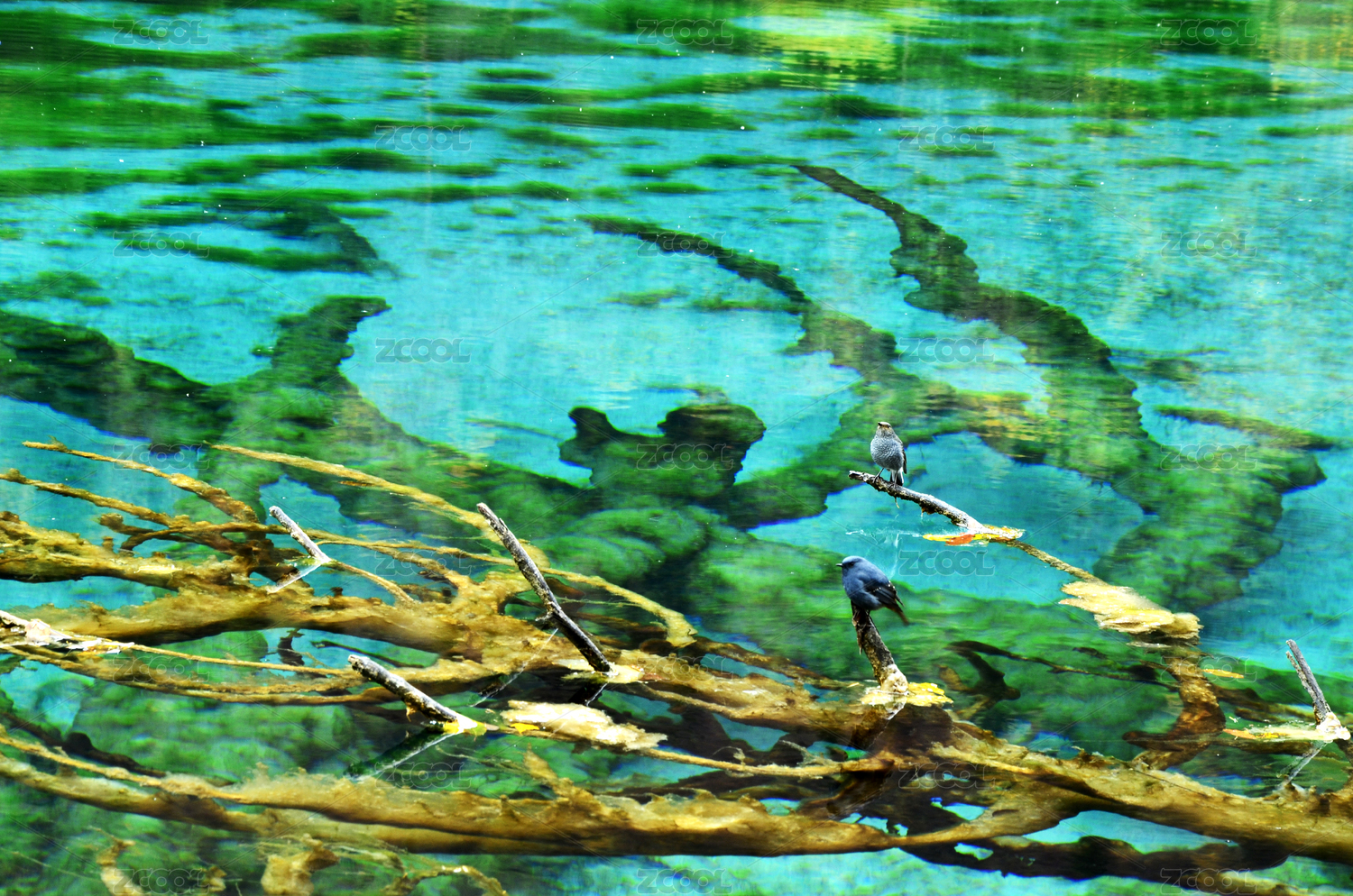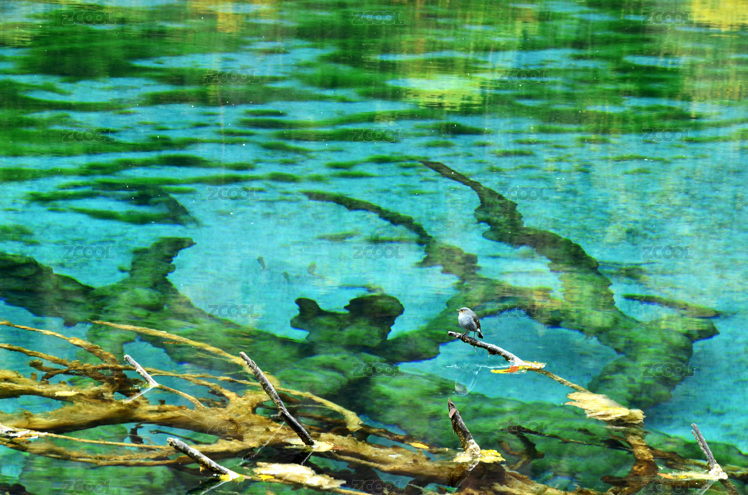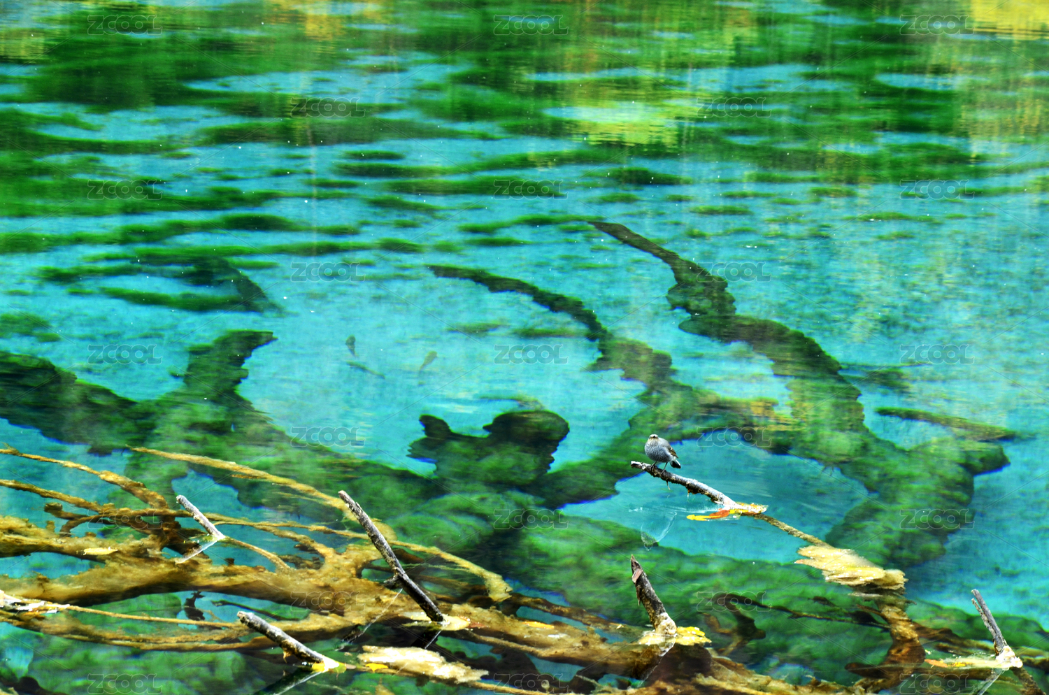四川省阿坝九寨沟海子孔雀海及湖底的钙化木