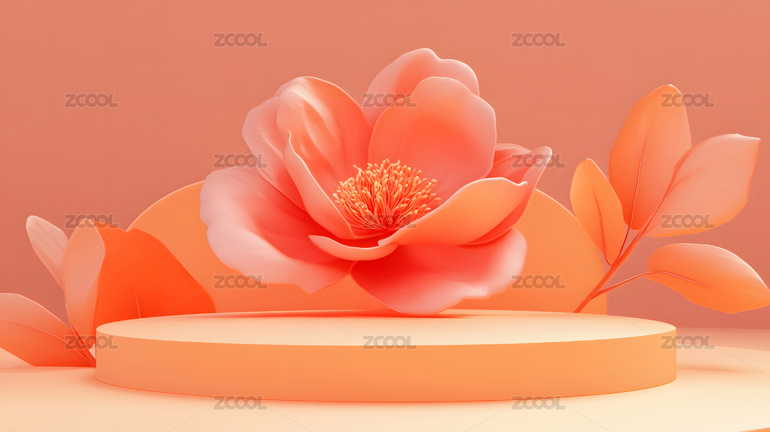 一朵樱花和叶子电商展示舞台
