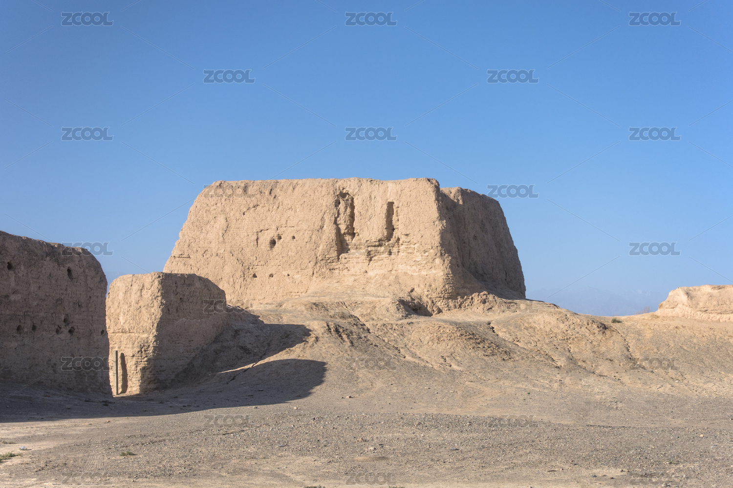 瓜州雕塑长廊荒凉的古老建筑遗址