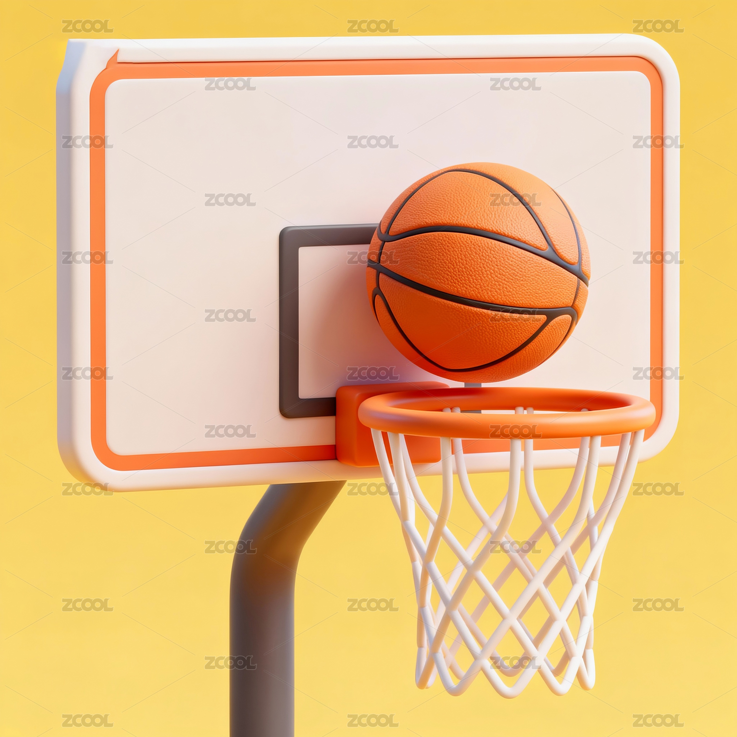 橙色篮球与篮球架模型 三维渲染
