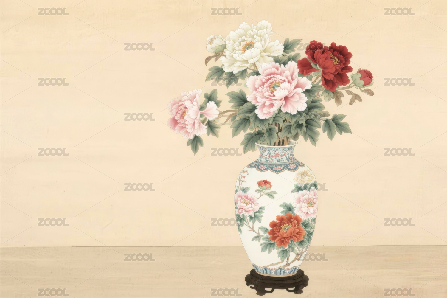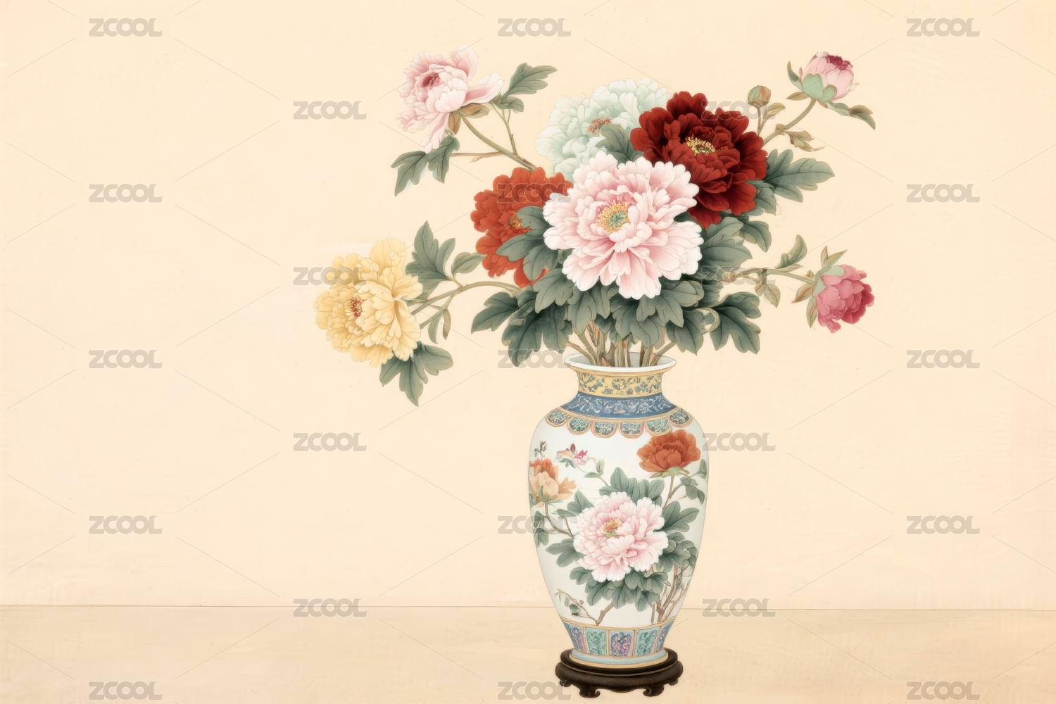 插花,中式花瓶,花瓶,中式,国风,花朵,一枝花,花豆,陶瓷瓶,瓶子