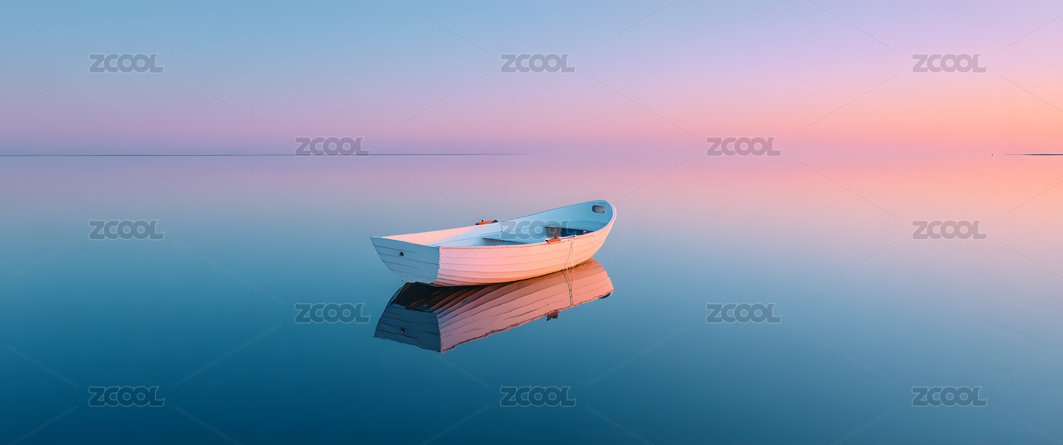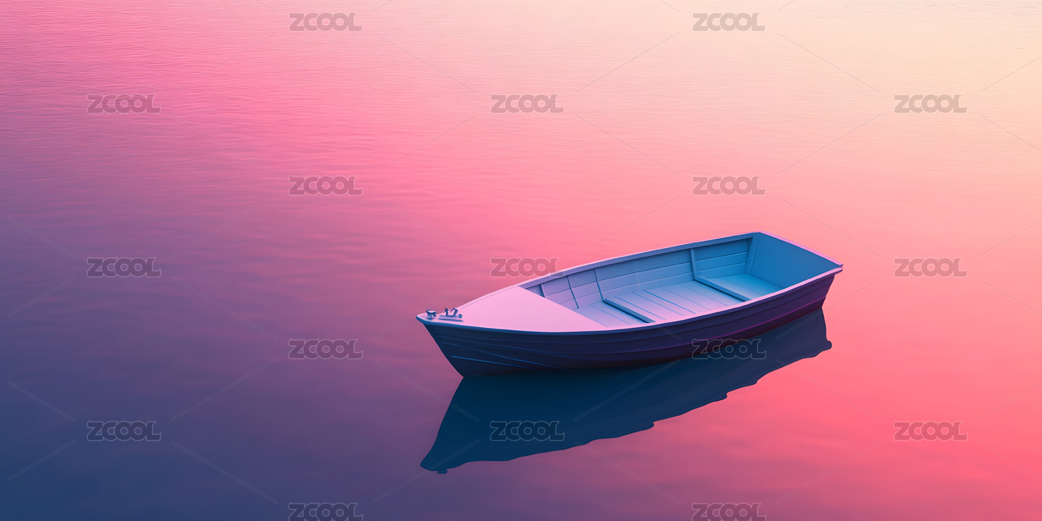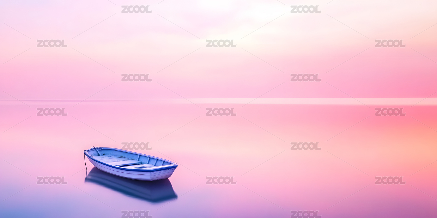 粉橙天空静水小船