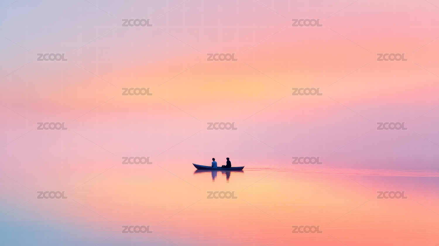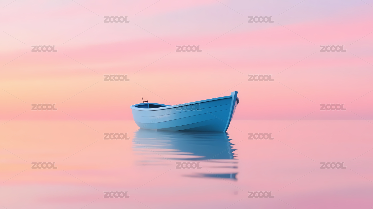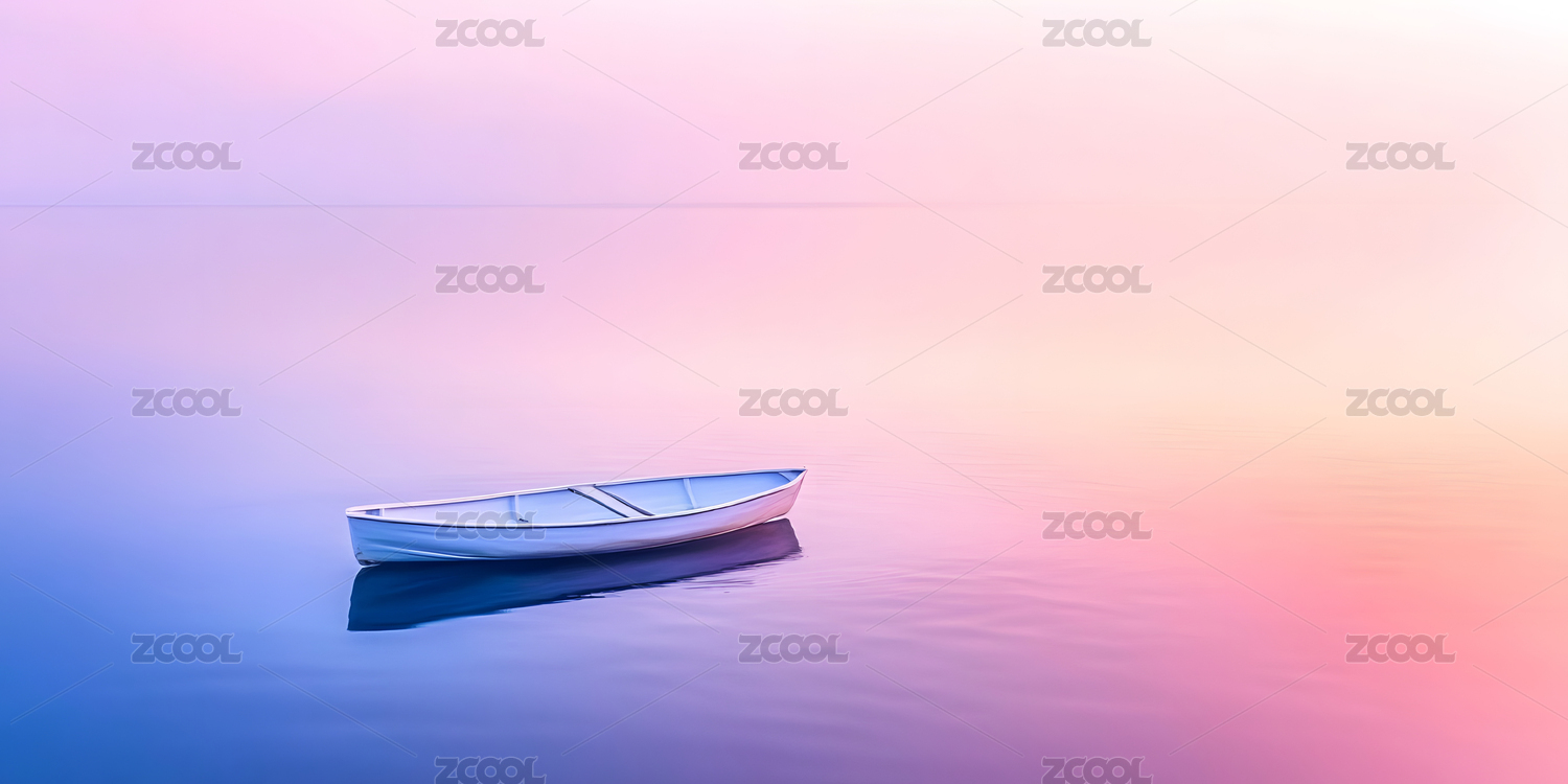 粉橙天空静水小船