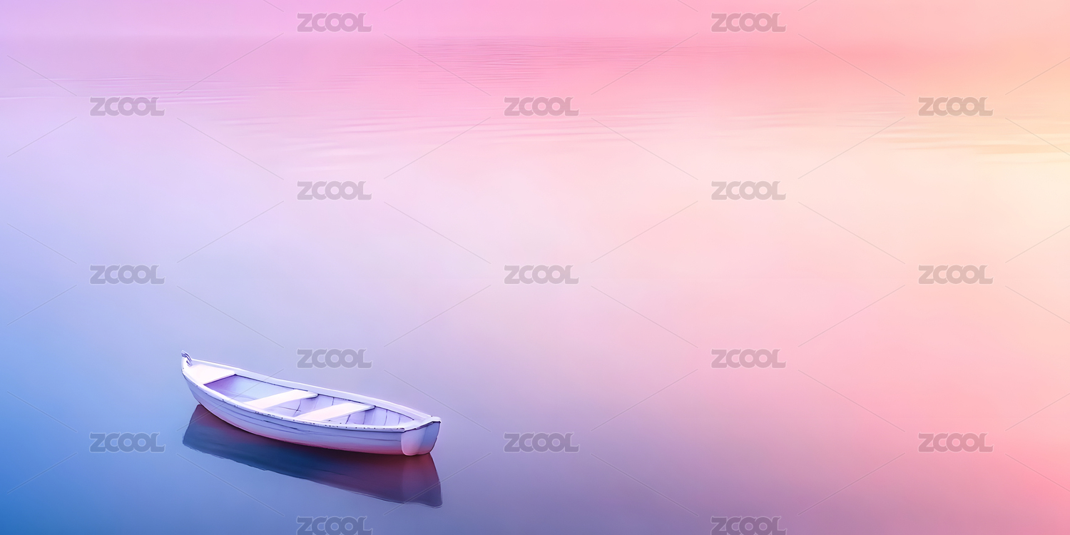 白色小船粉橙天空