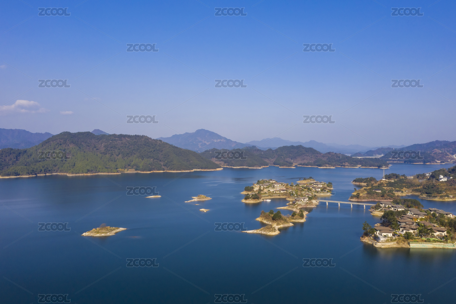 航拍,杭州,浙江省,千岛湖,自然风光,地标,绿水青山,淳安,天空,蓝天白云