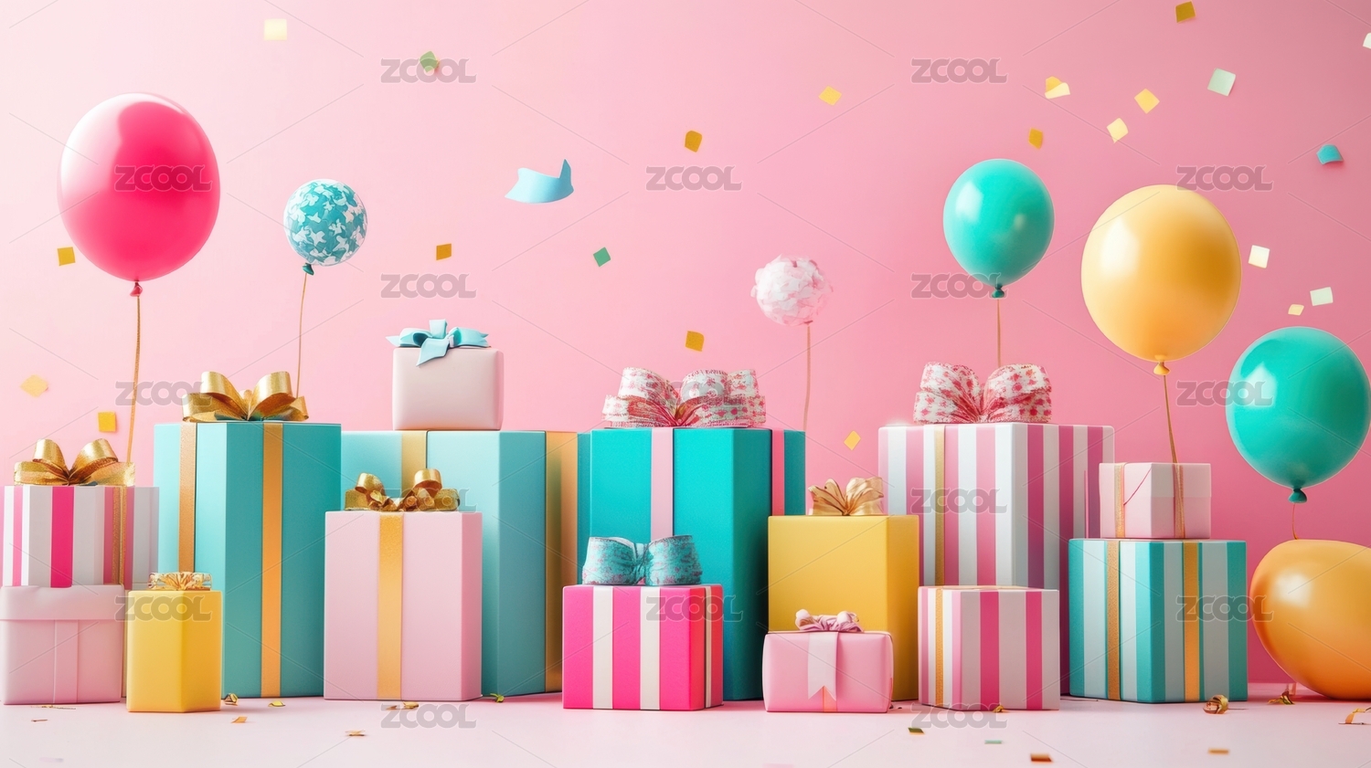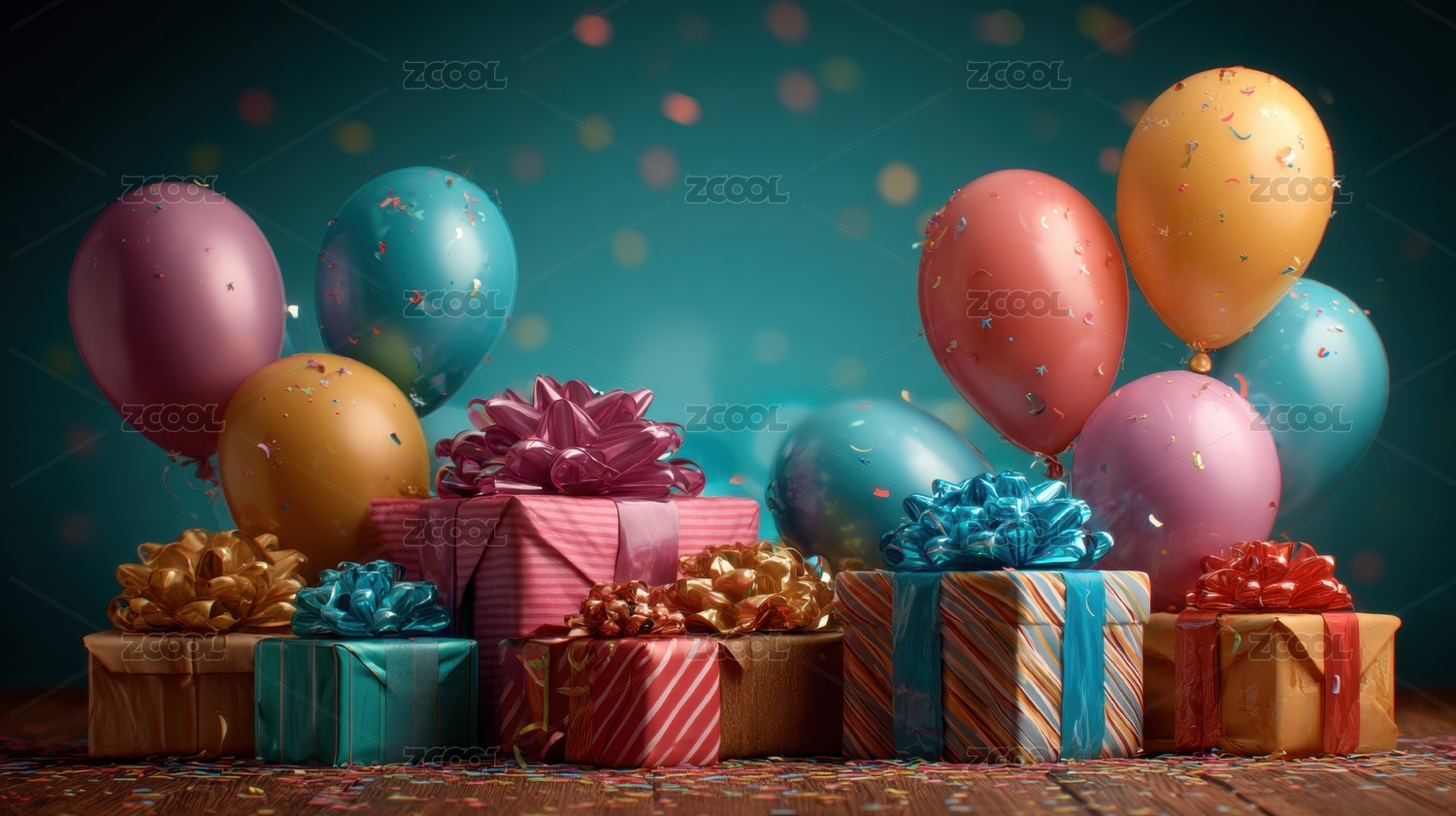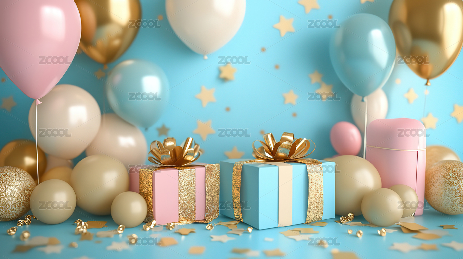 礼物与气球的庆祝场景
