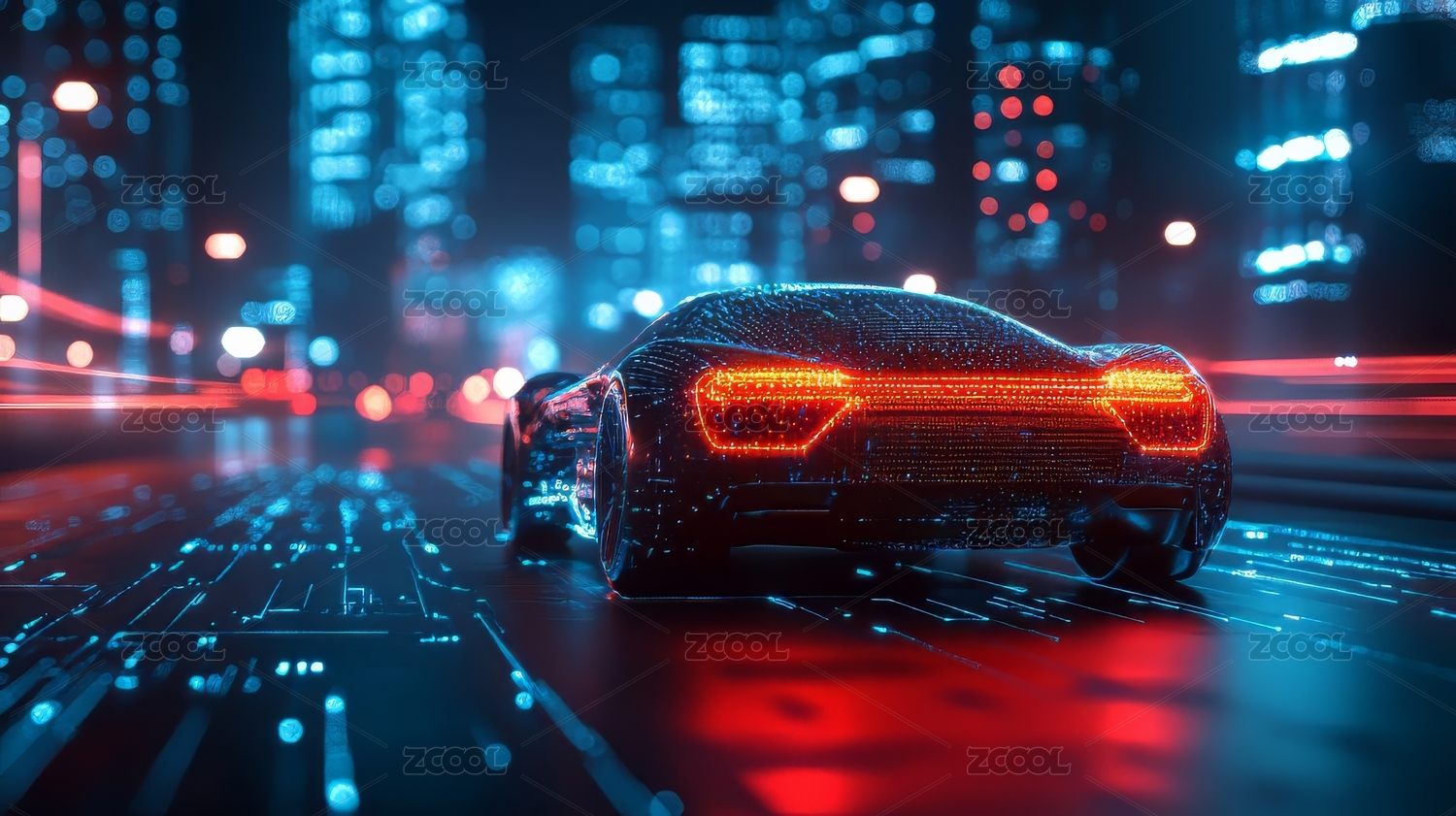 科技,人工智能,跑车,未来汽车,都市夜景,光影,线条,速度,动感,汽车设计