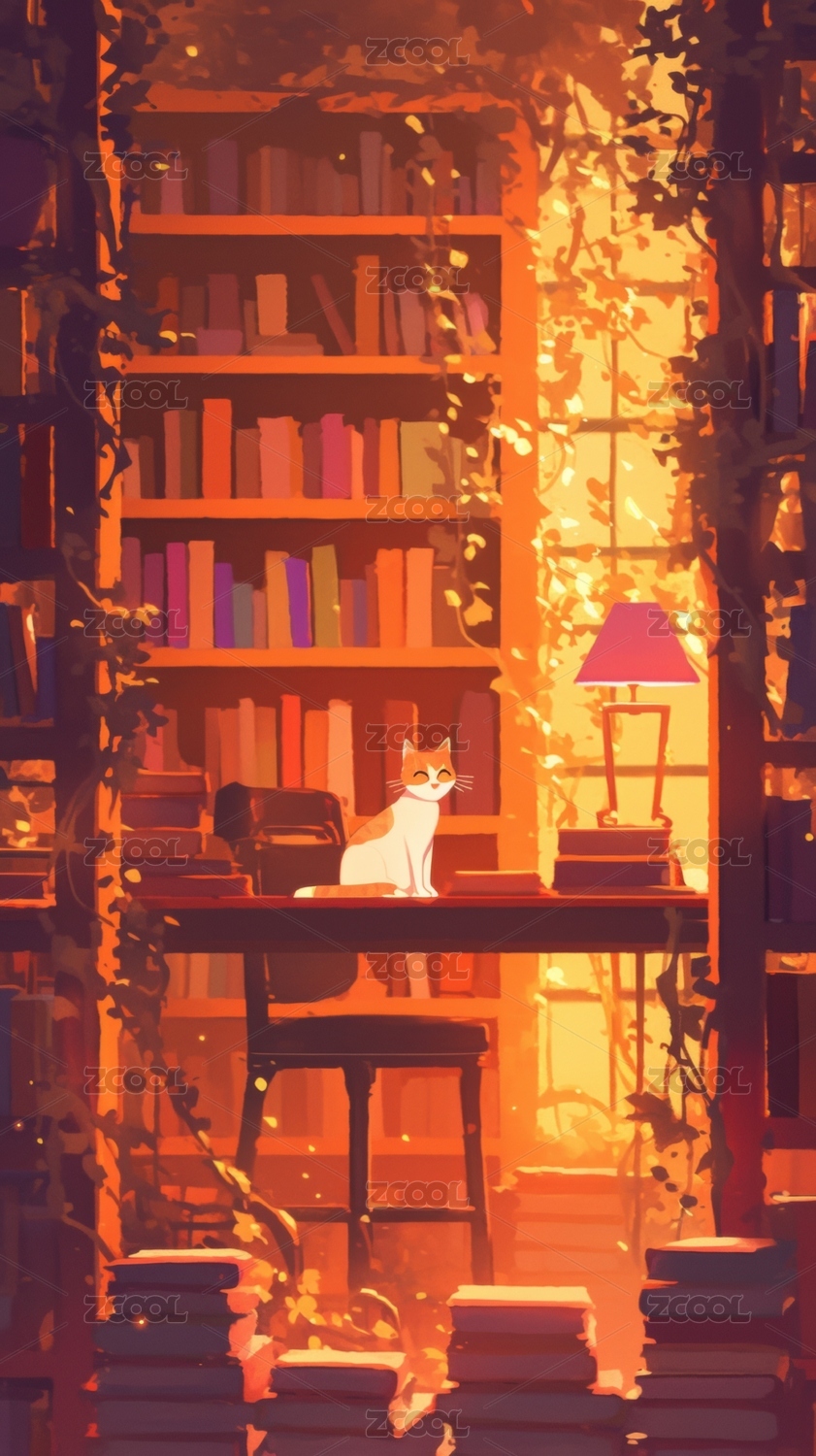 图书馆中的猫咪阅读时光