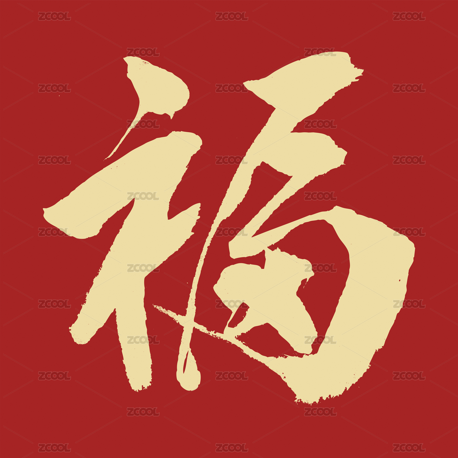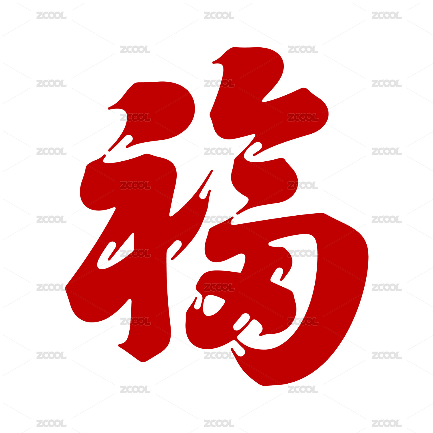 红色福字毛笔字字体传统书法艺术设计矢量图