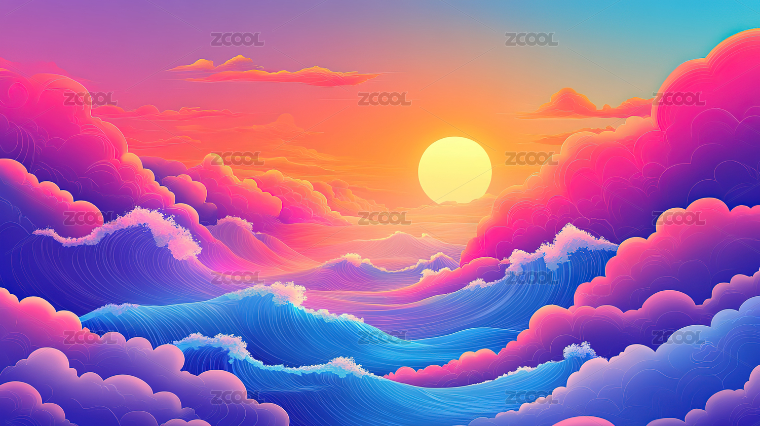 梦幻粉色海浪日落