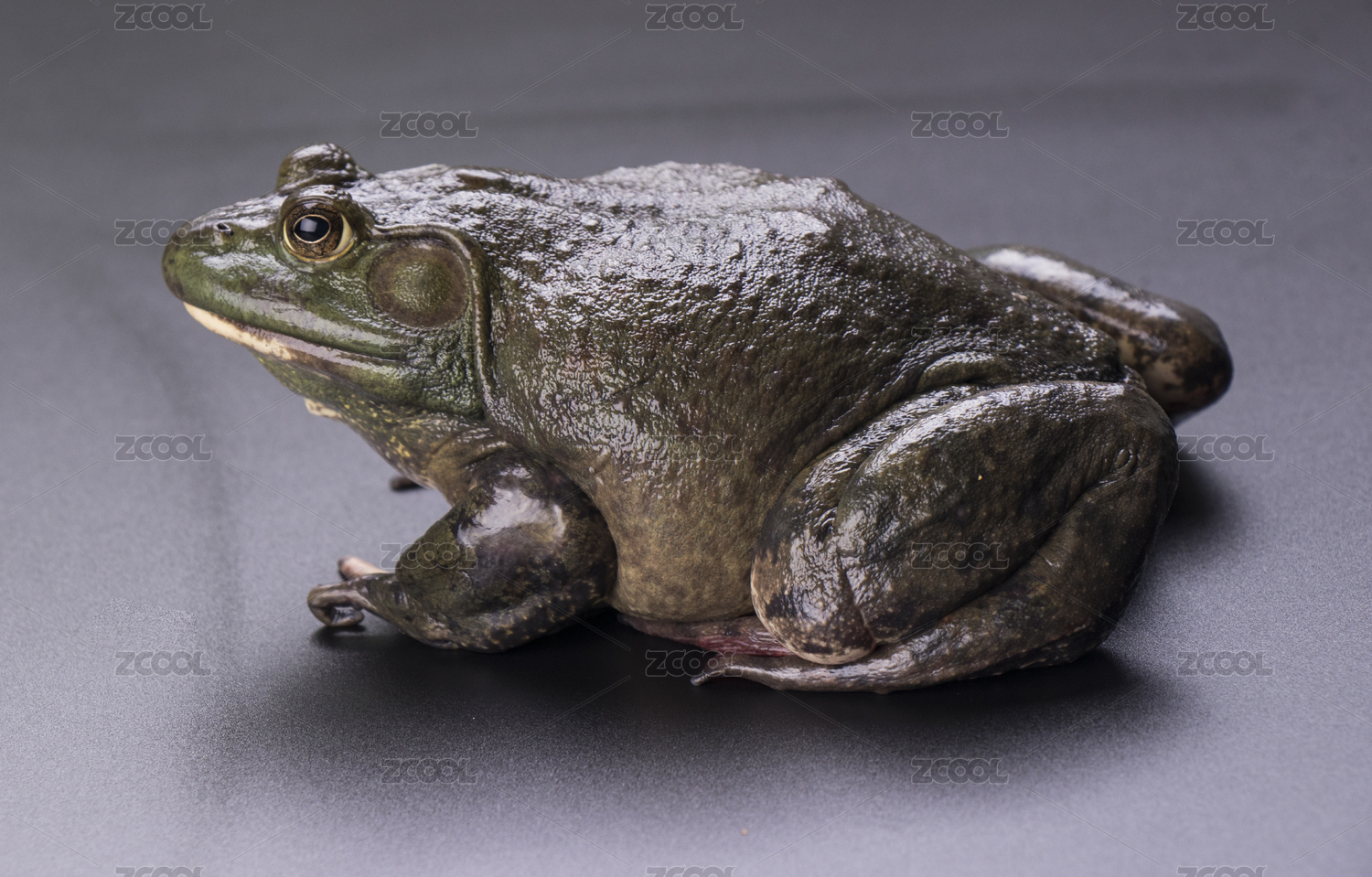 放在黑色背景上一只活蹦乱跳的牛蛙