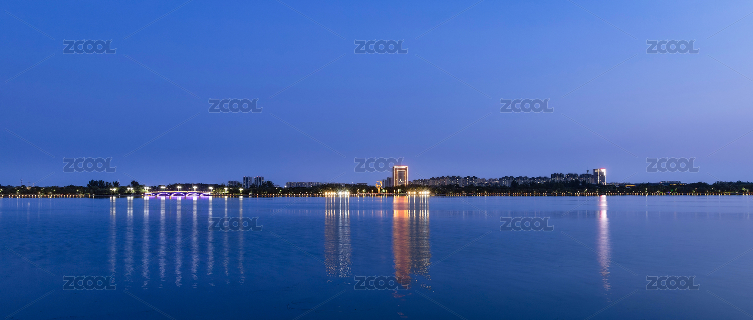 上海金山汇龙湖公园建筑夕阳灯光夜景