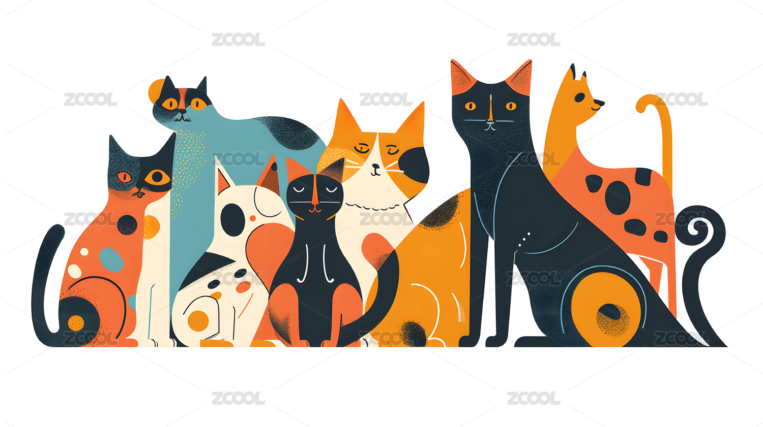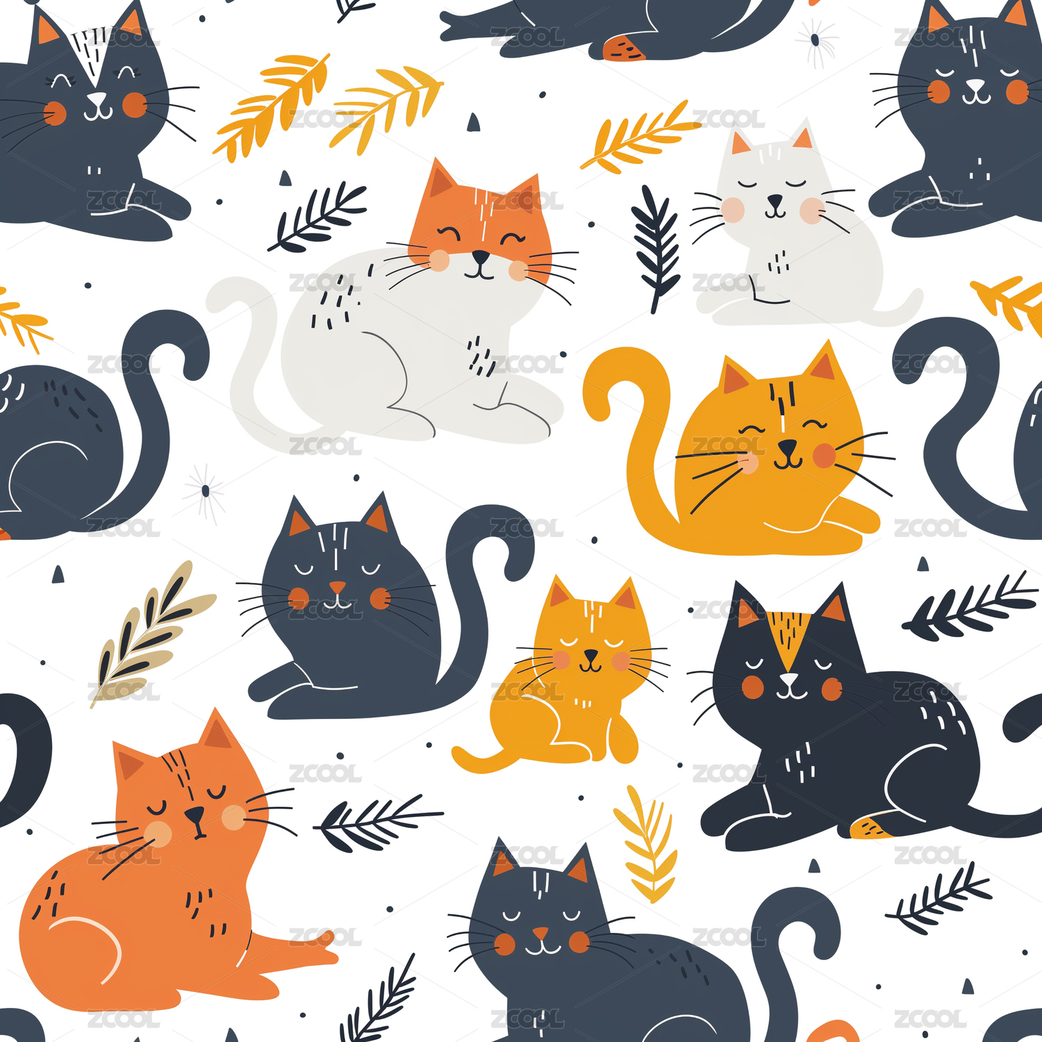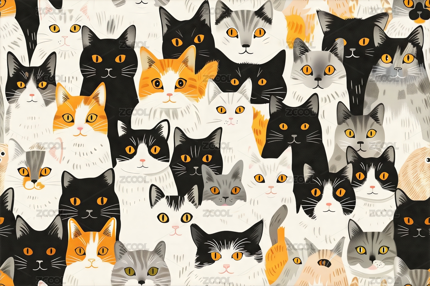 猫,拼贴,贴纸,系列,卡通,极简,简笔画,黑底,动物,可爱