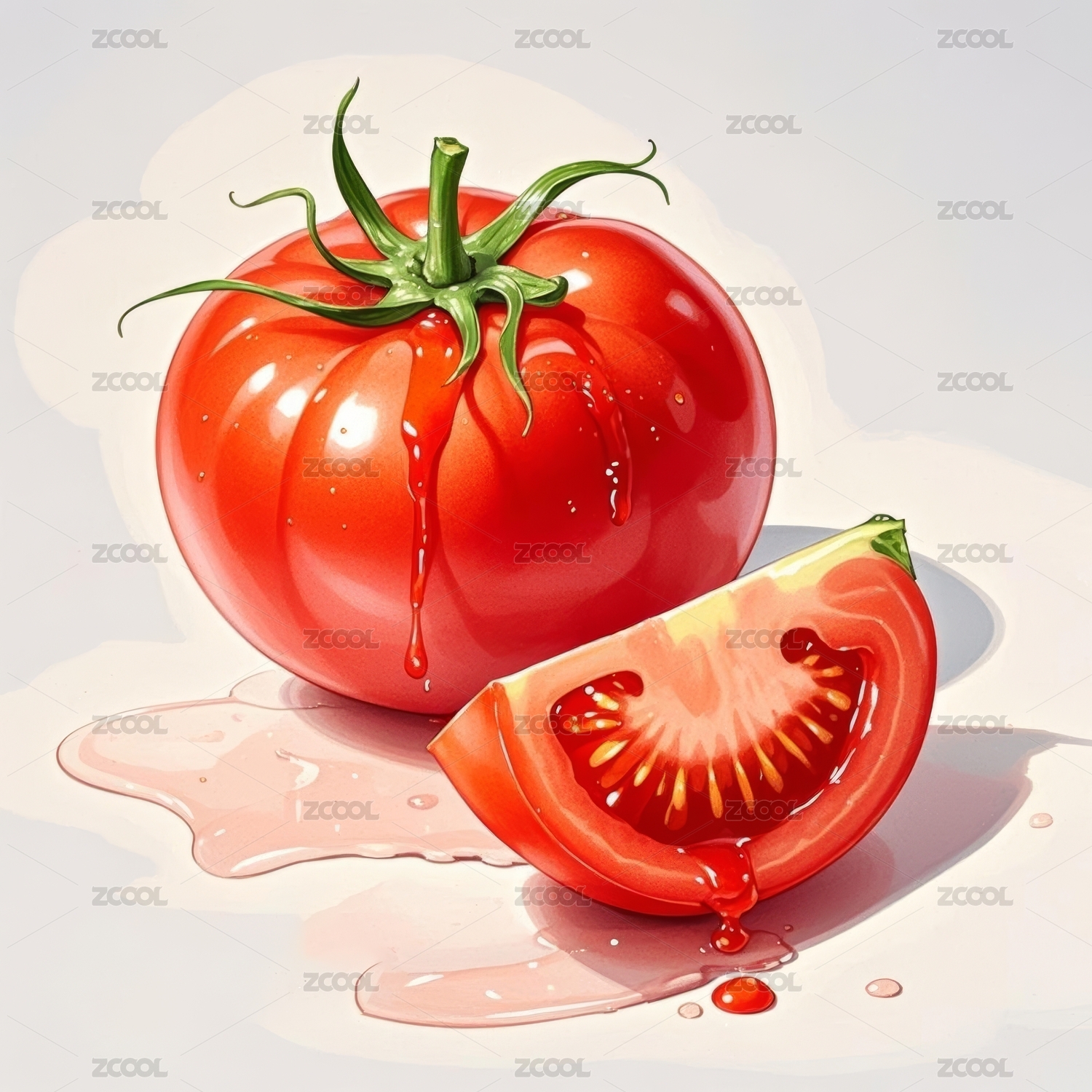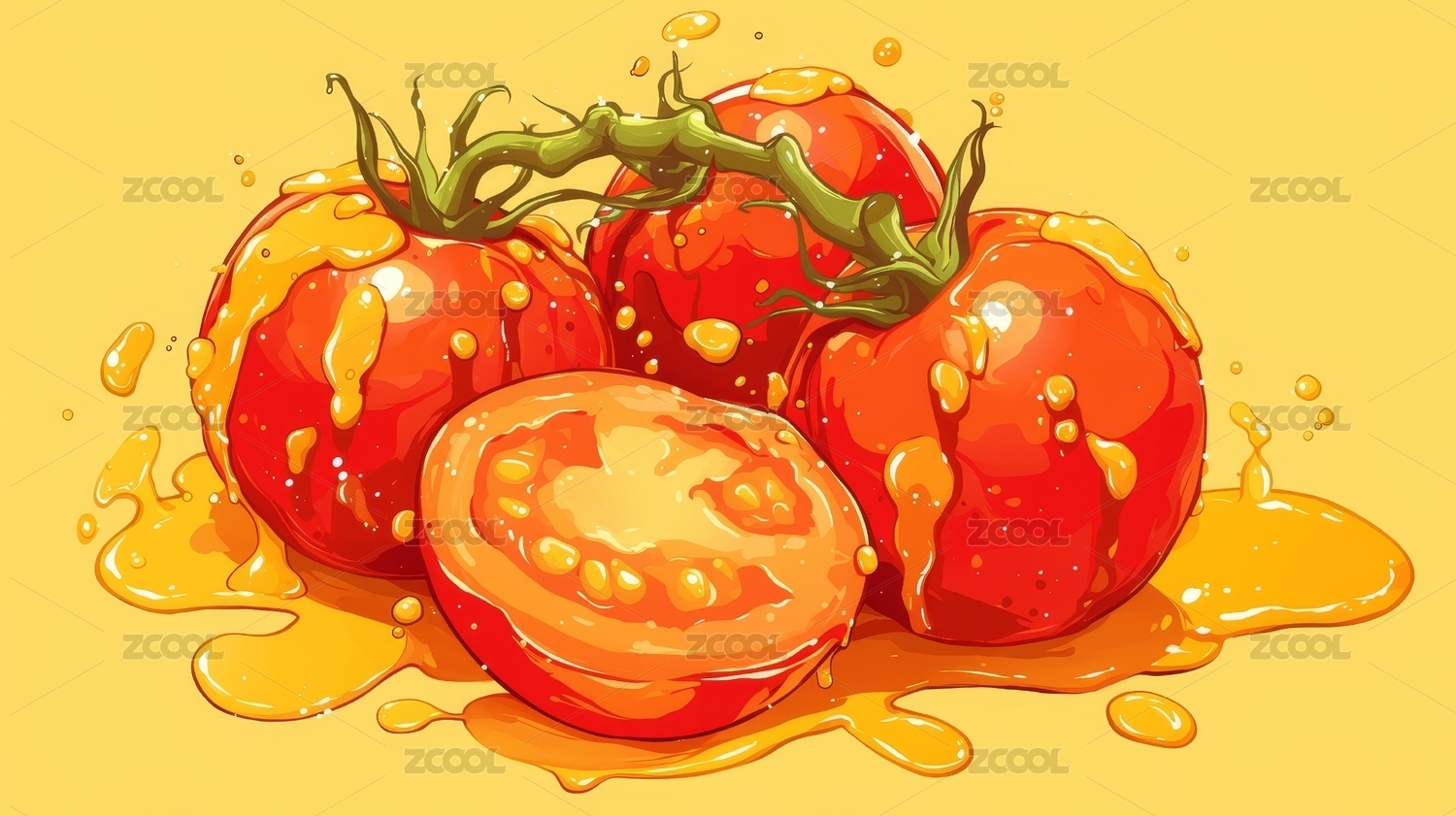 鲜红番茄与汁液四溅的生动场景