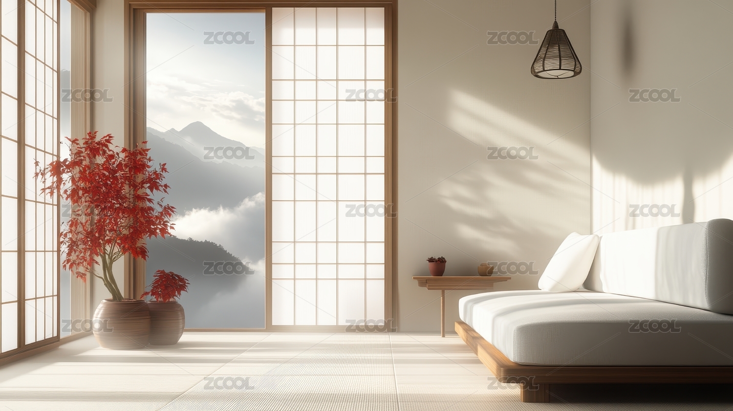 日式,禅意,简约,山景,窗景,榻榻米,宁静,自然,木质,设计