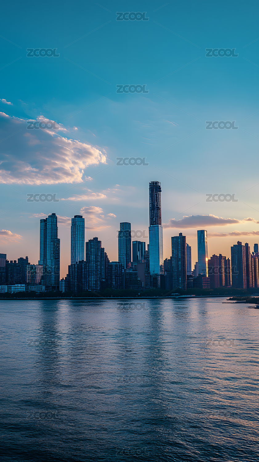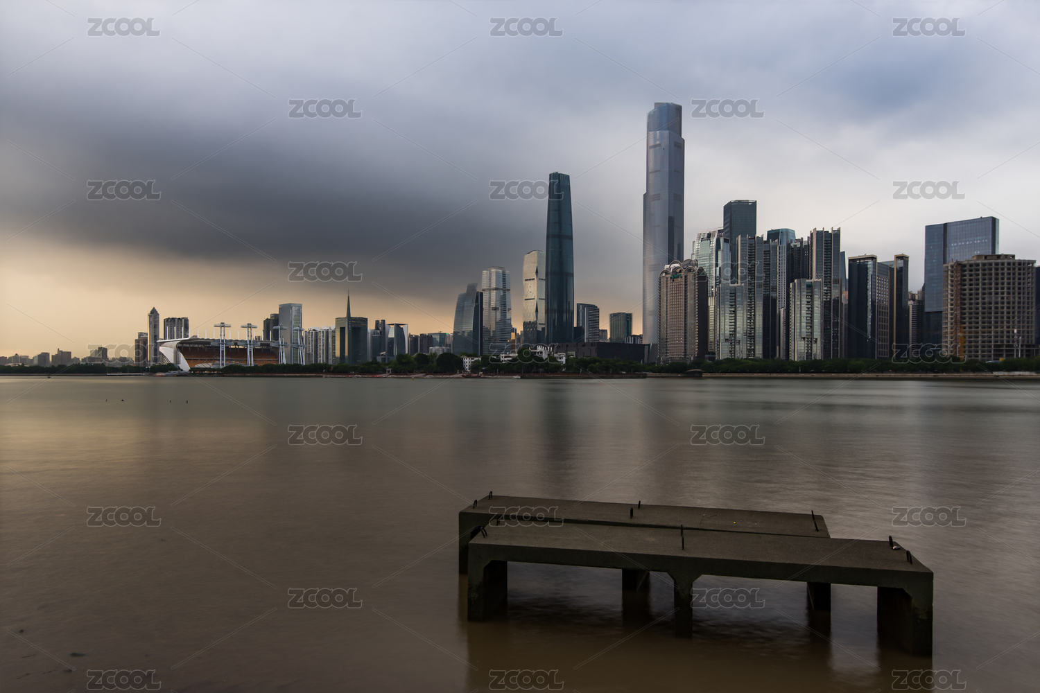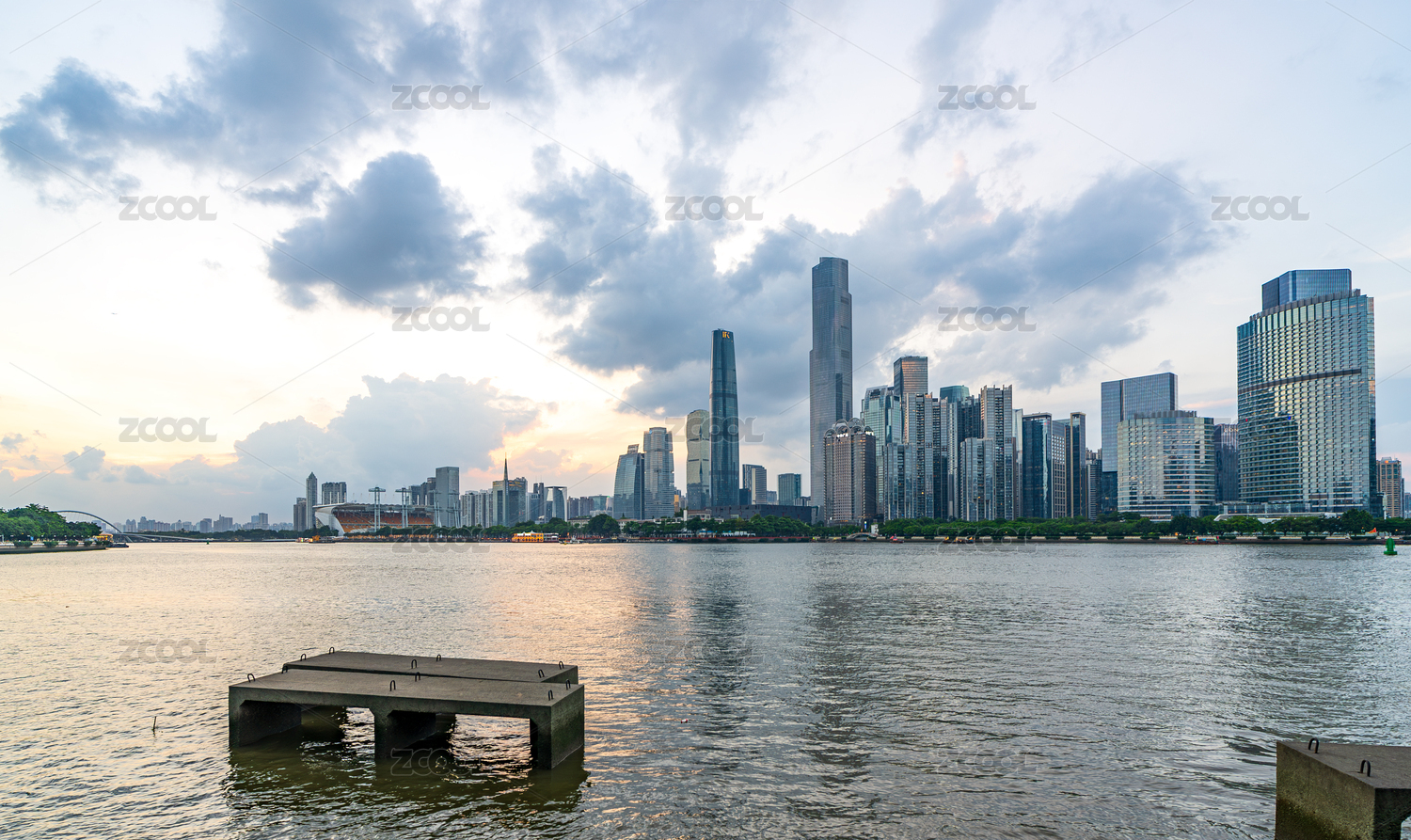 广州珠江新城CBD建筑群黄昏晚霞落日余晖