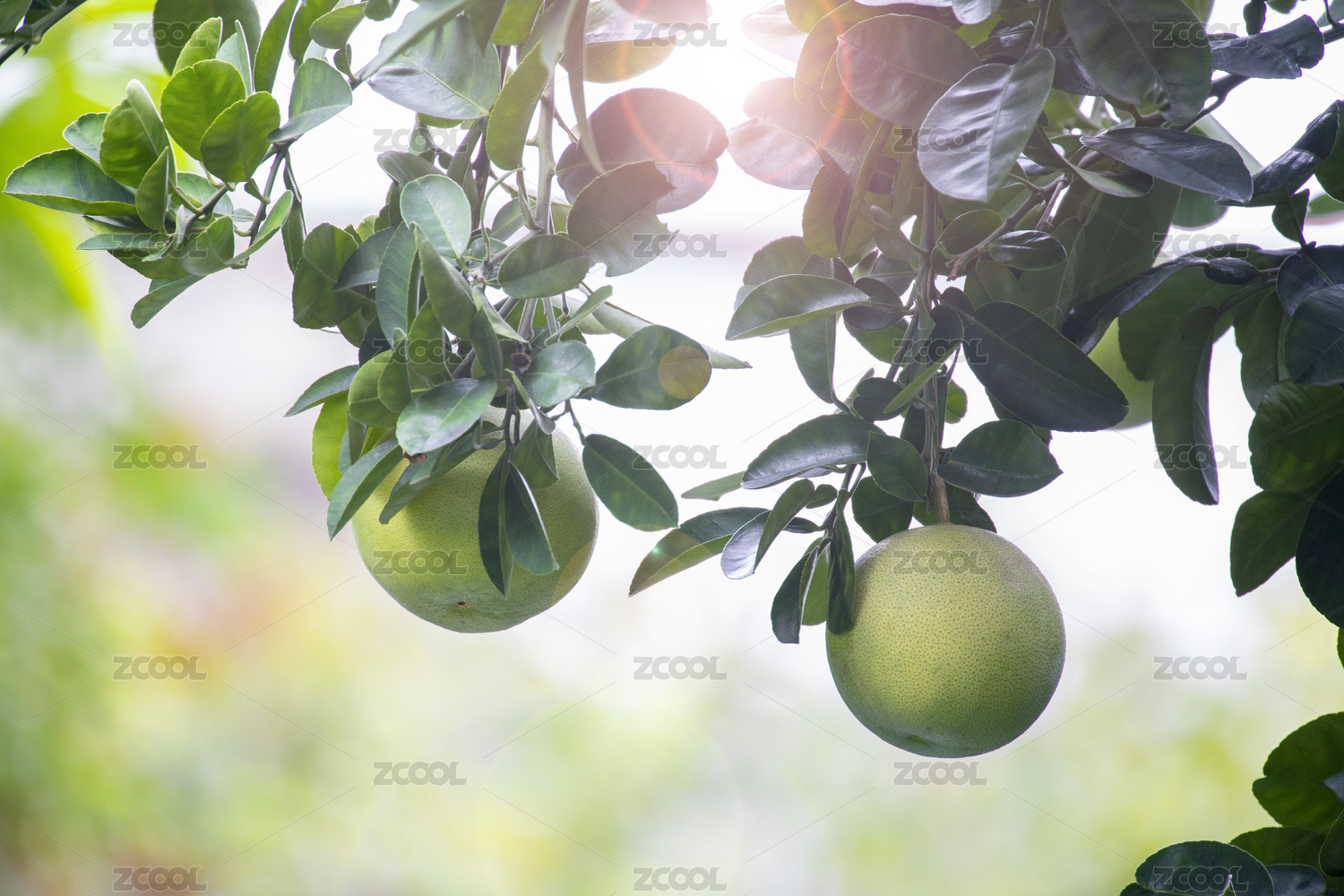 夏日即将成熟的柚子果实