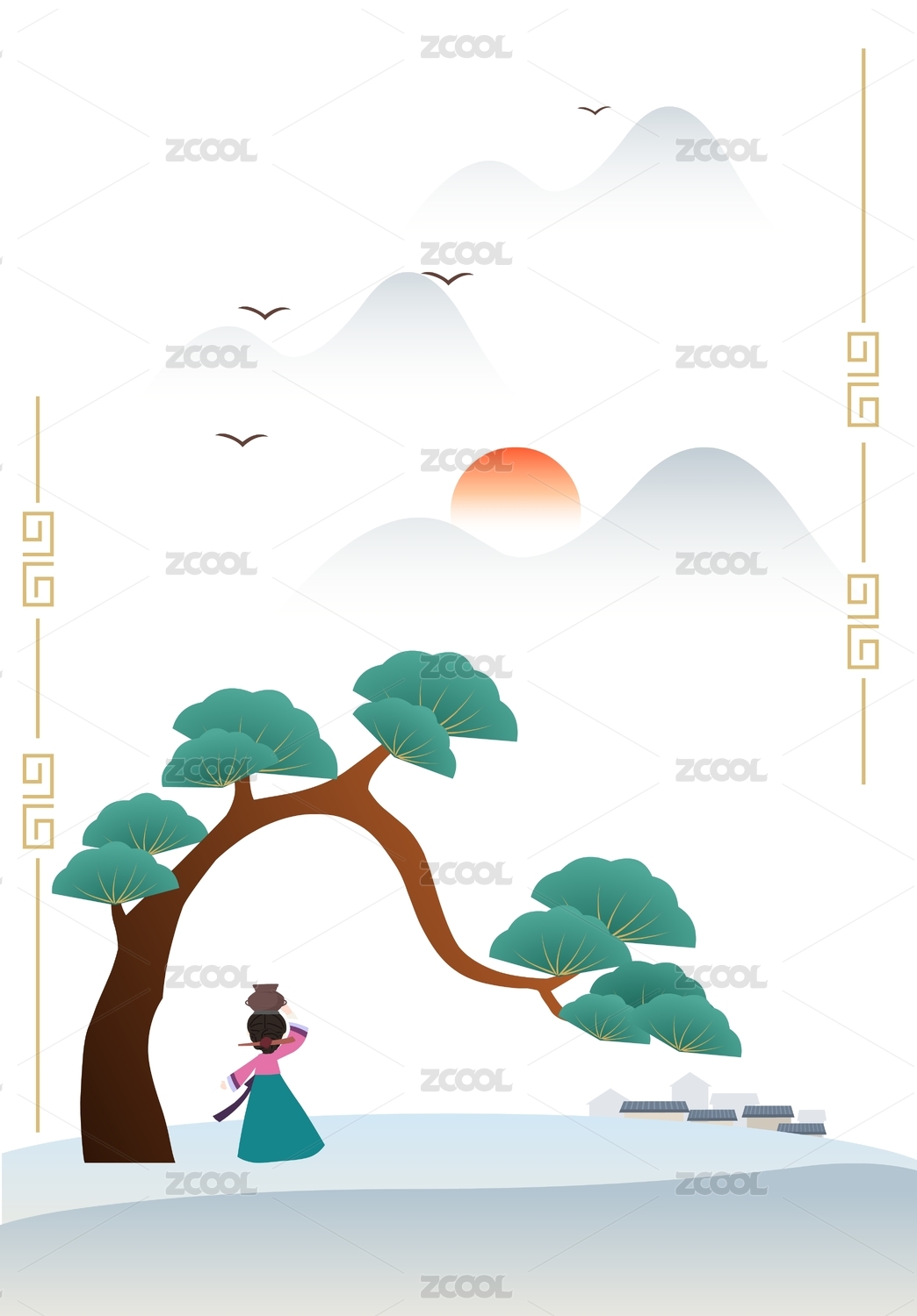 新中式国潮创意国潮国风青绿山水矢量画