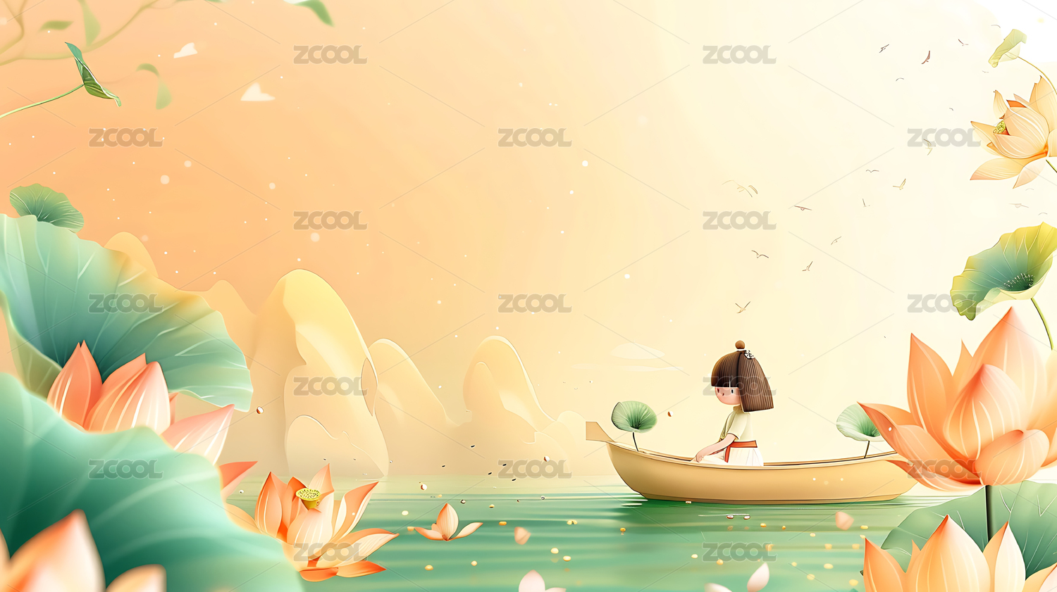 荷花夏天清新国风矢量插画