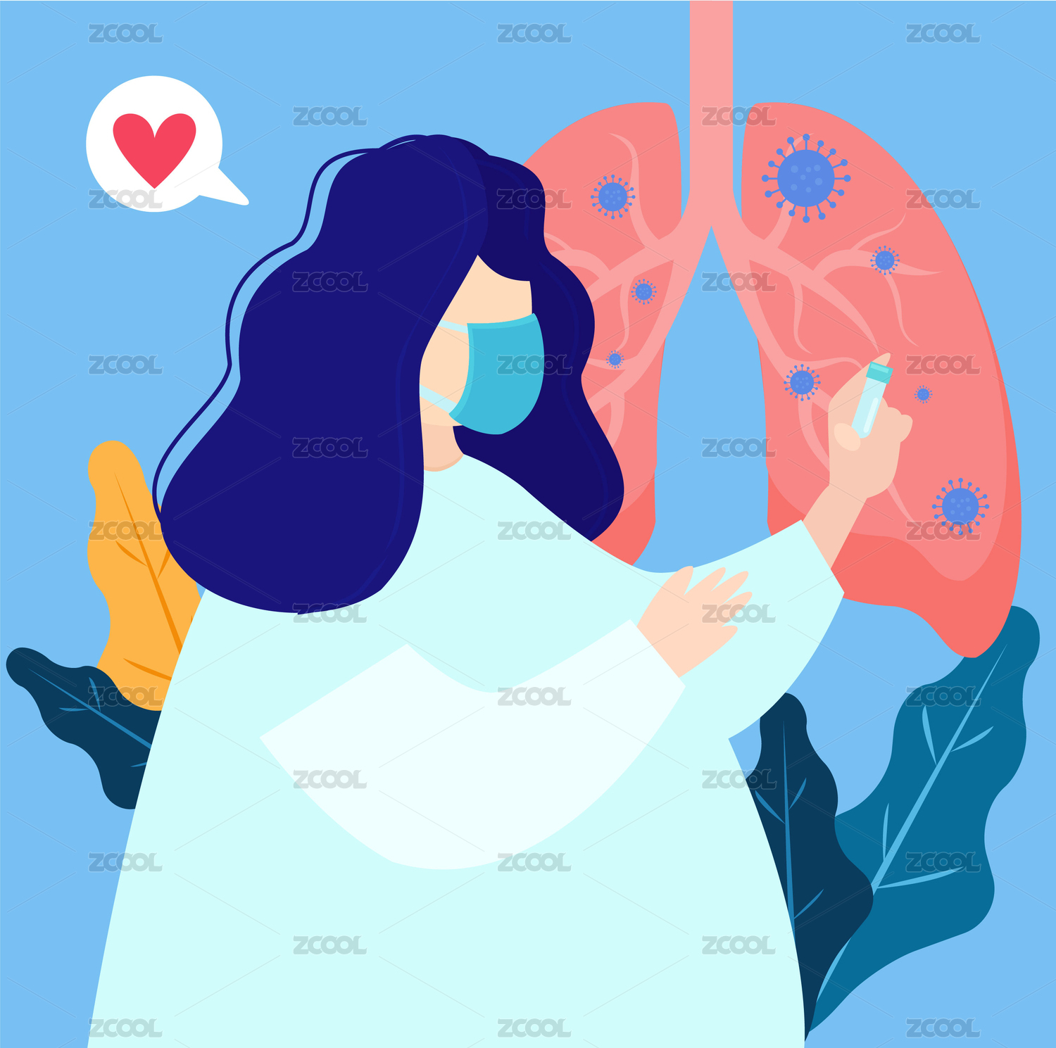 扁平风格医疗人员研究肺炎病毒的矢量插画