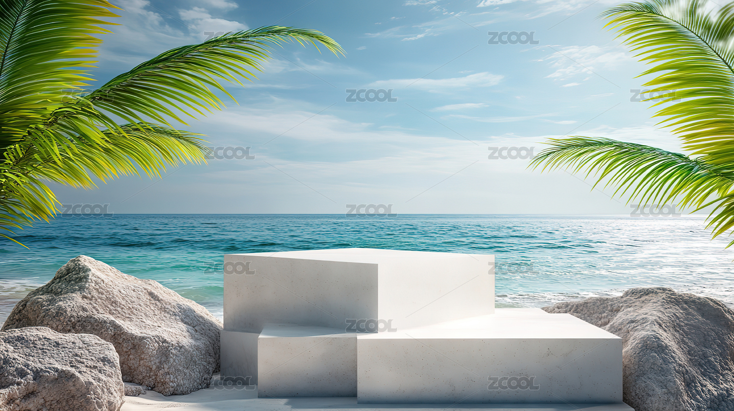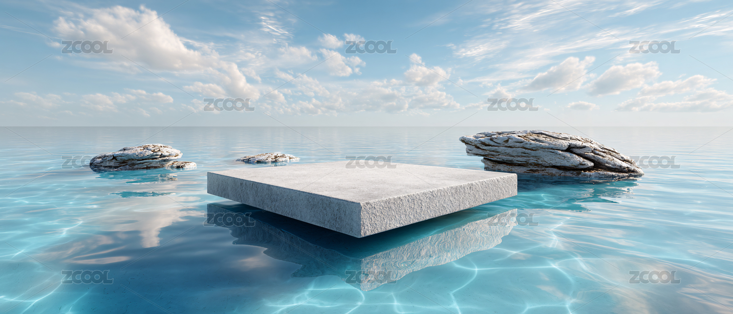 3D海边静物展示台场景背景