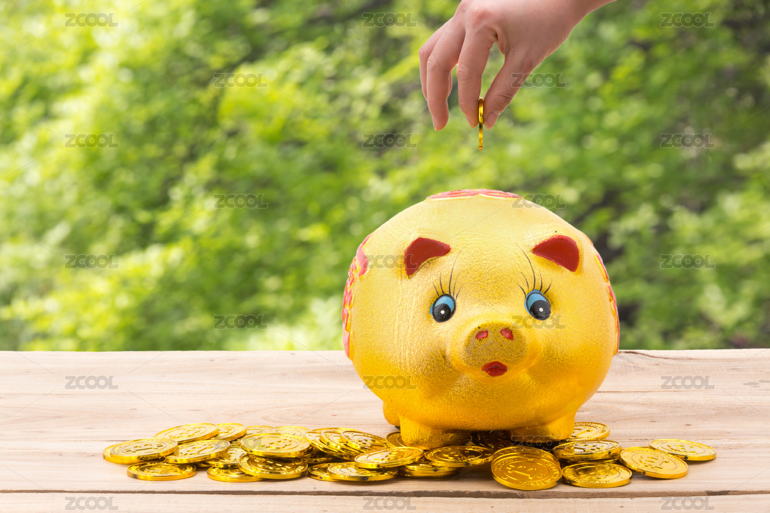 银行,天空,存钱罐,背景,猪,小猪,硬币,金币,手,绿色