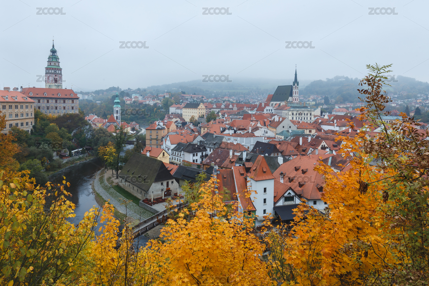 欧洲捷克克鲁姆洛夫小镇一处河景