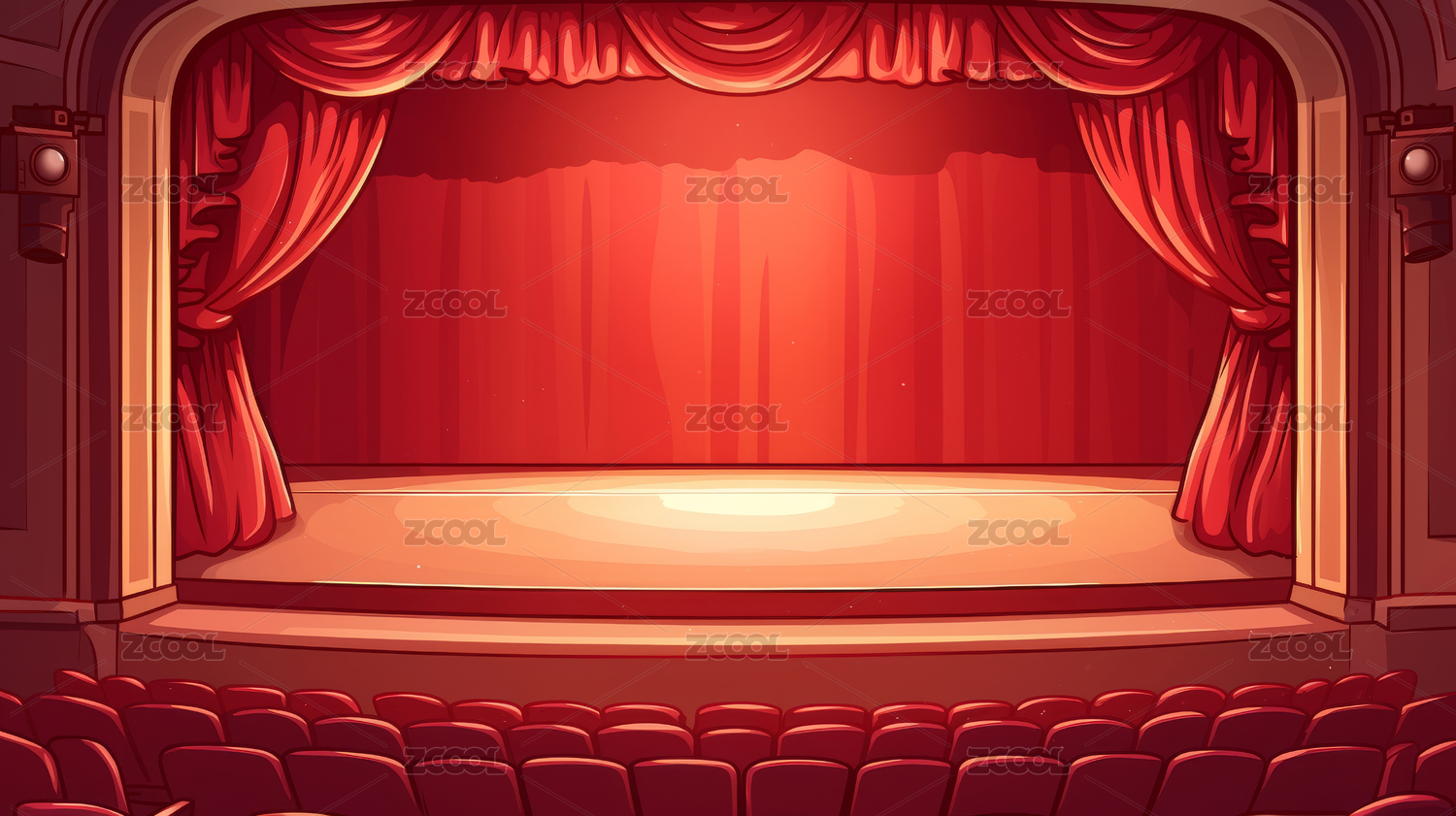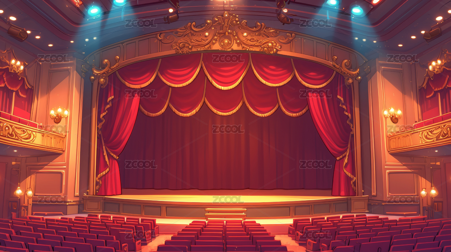 插画,卡通,插图,场景,室内,舞台,剧院,演出,表演,场所