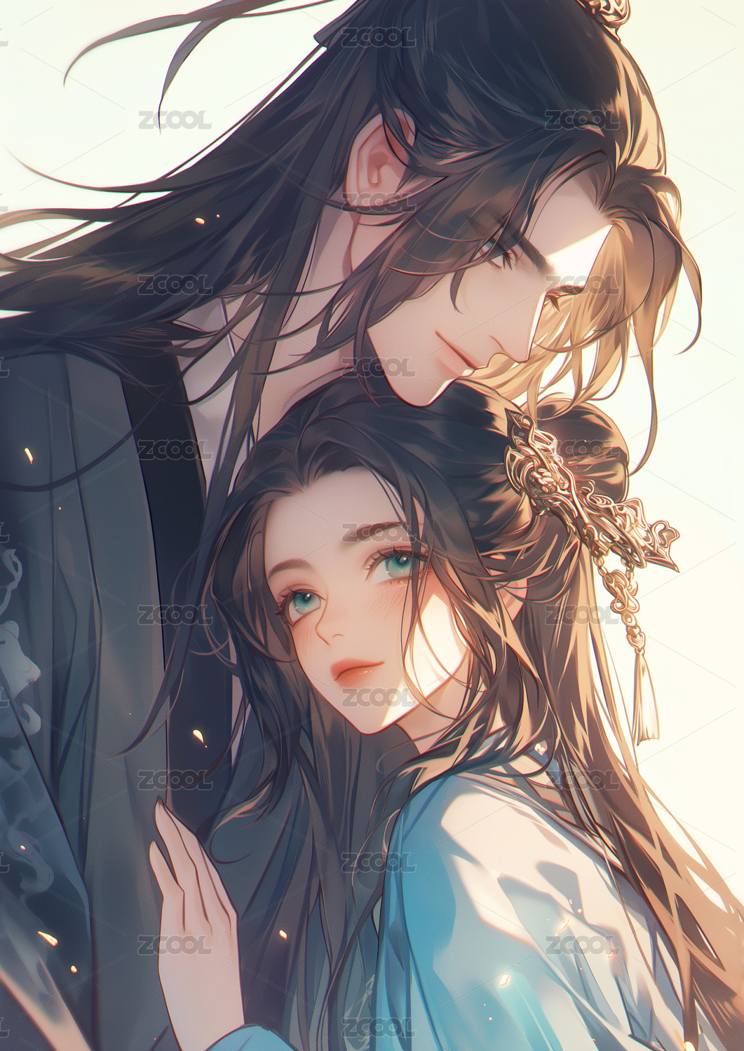 古风情侣插画
