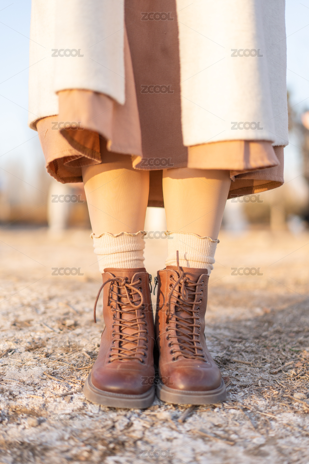 夕阳下的女孩腿部和鞋子特写