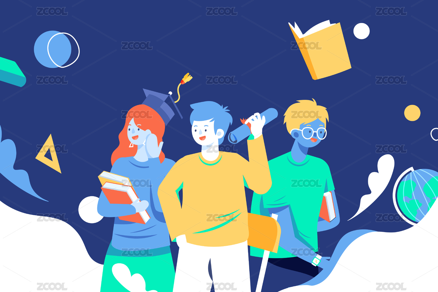 插画,寒假,暑假,开学,学生,大学生,学校,教育,在线,书