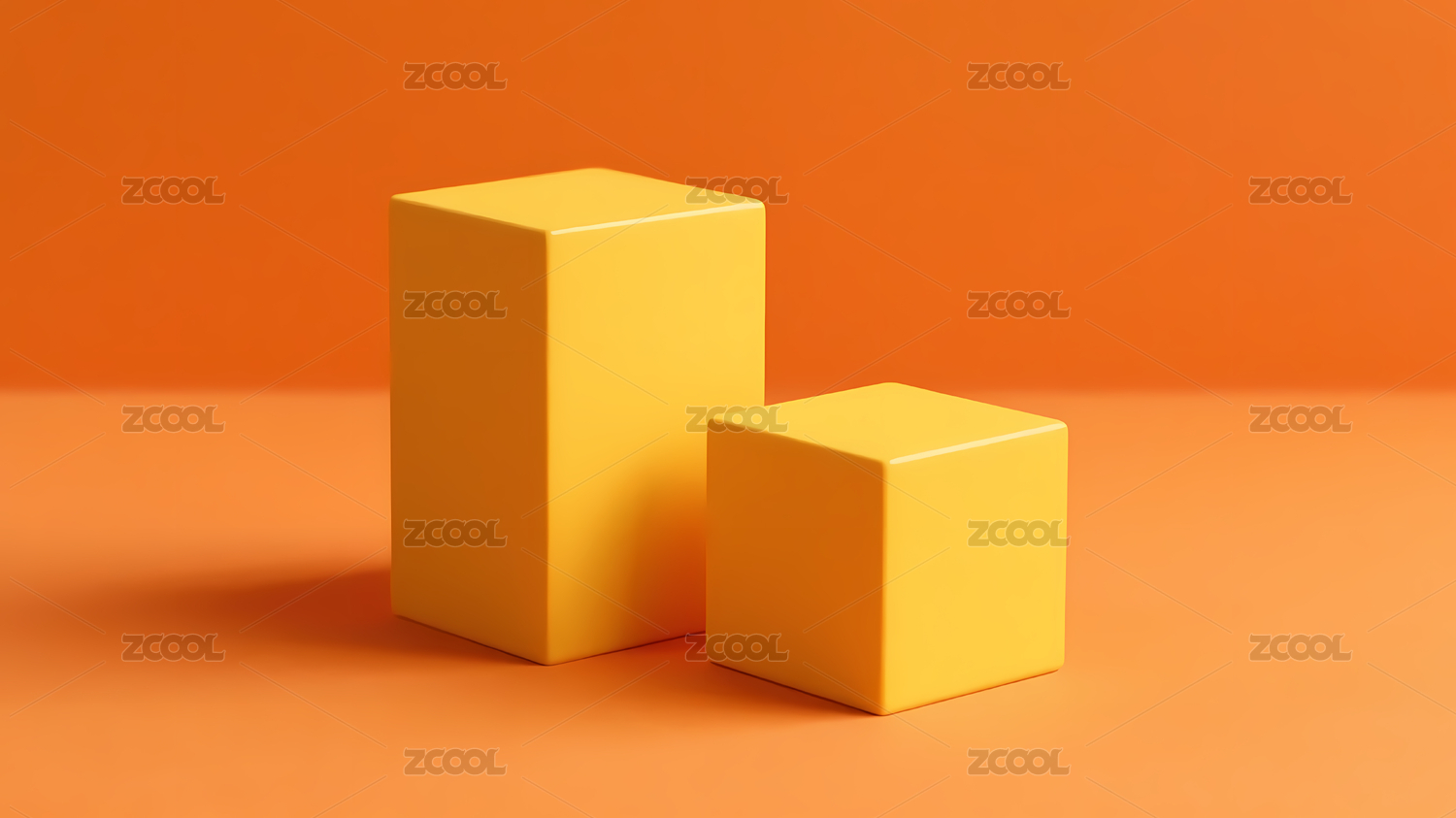 阳光下的黄色立方体电商产品展台三维渲染背景设计