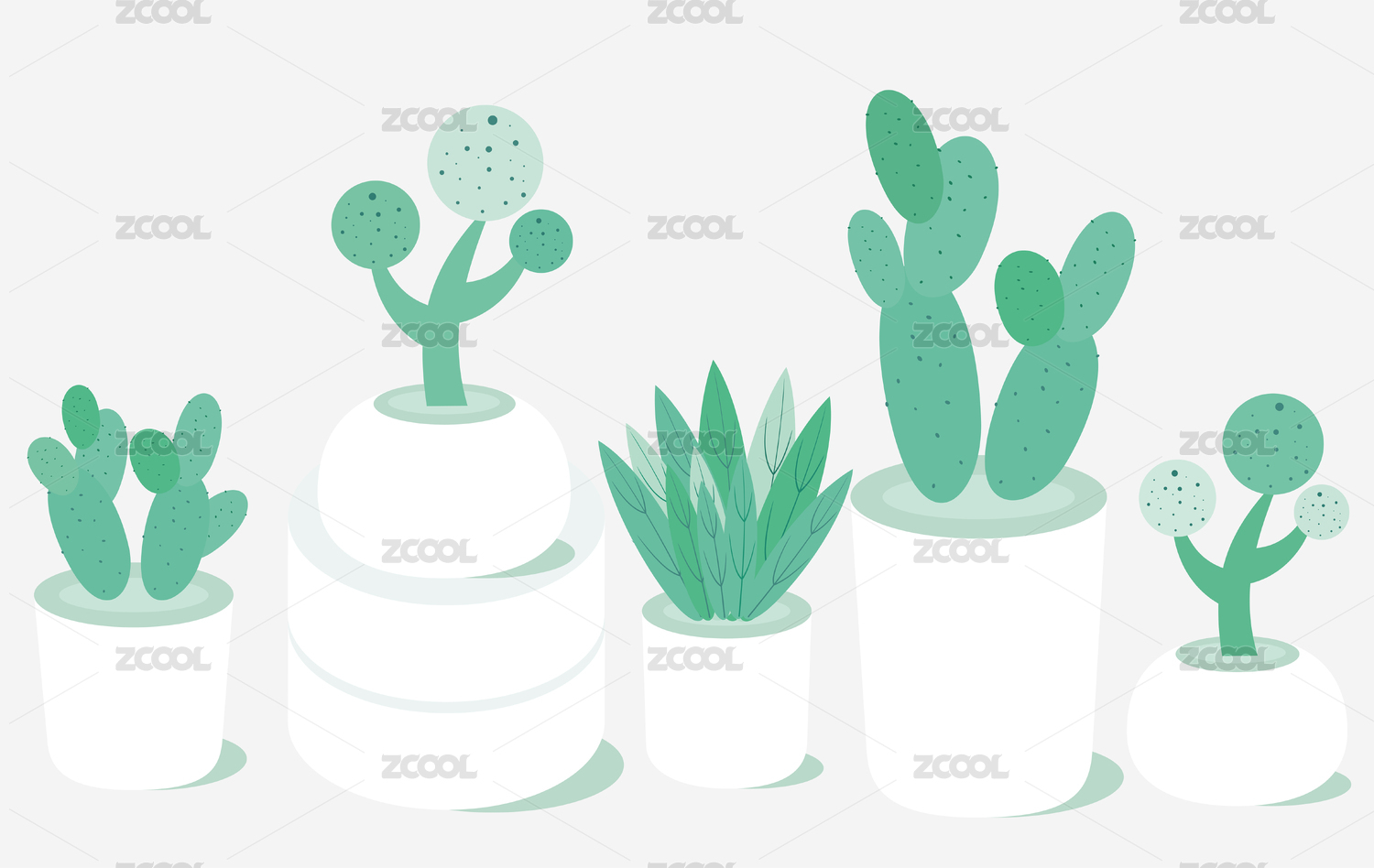 绿植,植物,家居,仙人掌,刺,绿色,花盆,风格,笔触,手绘