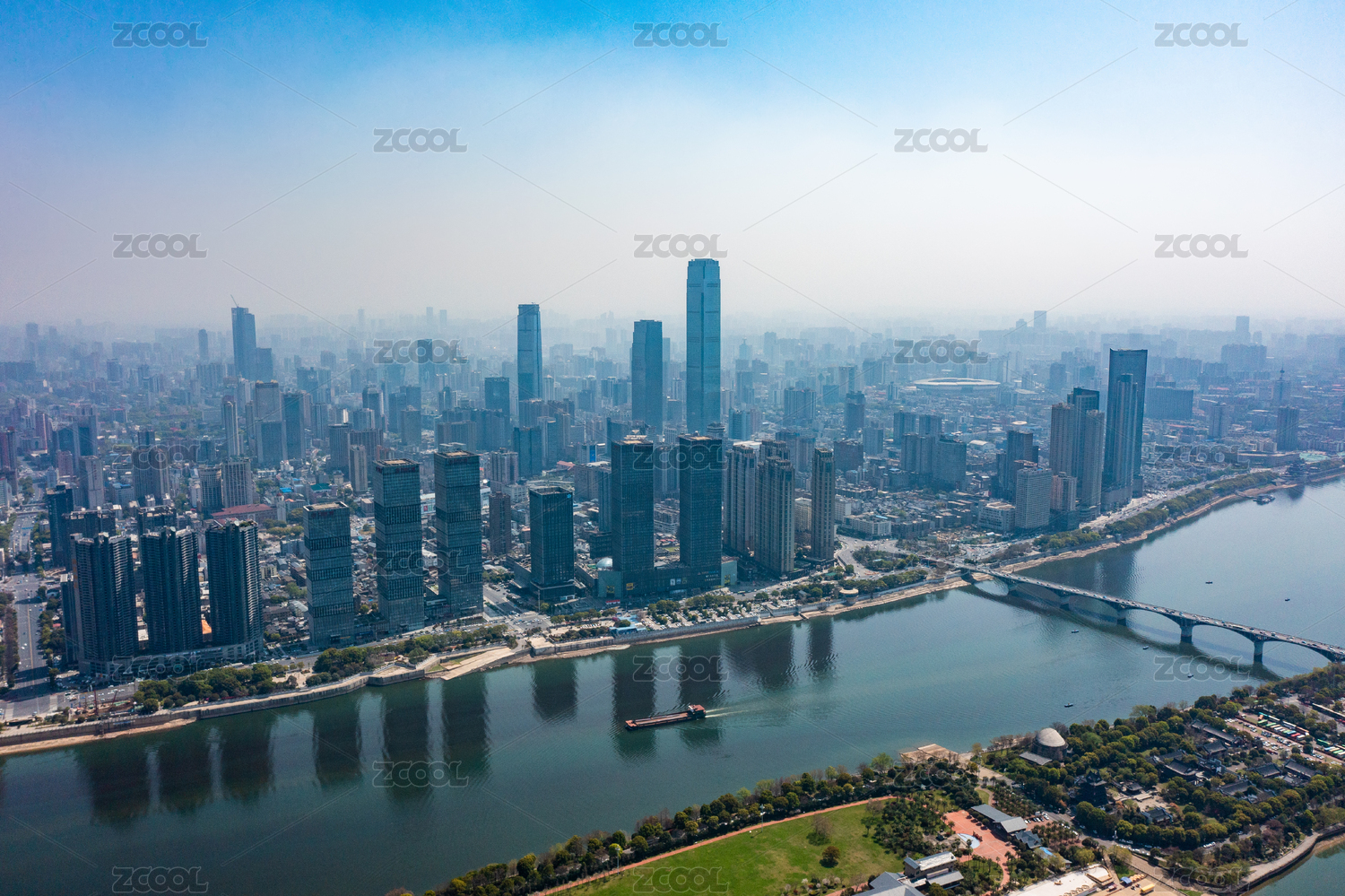 中国湖南长沙湘江北辰三角洲航拍城市风光