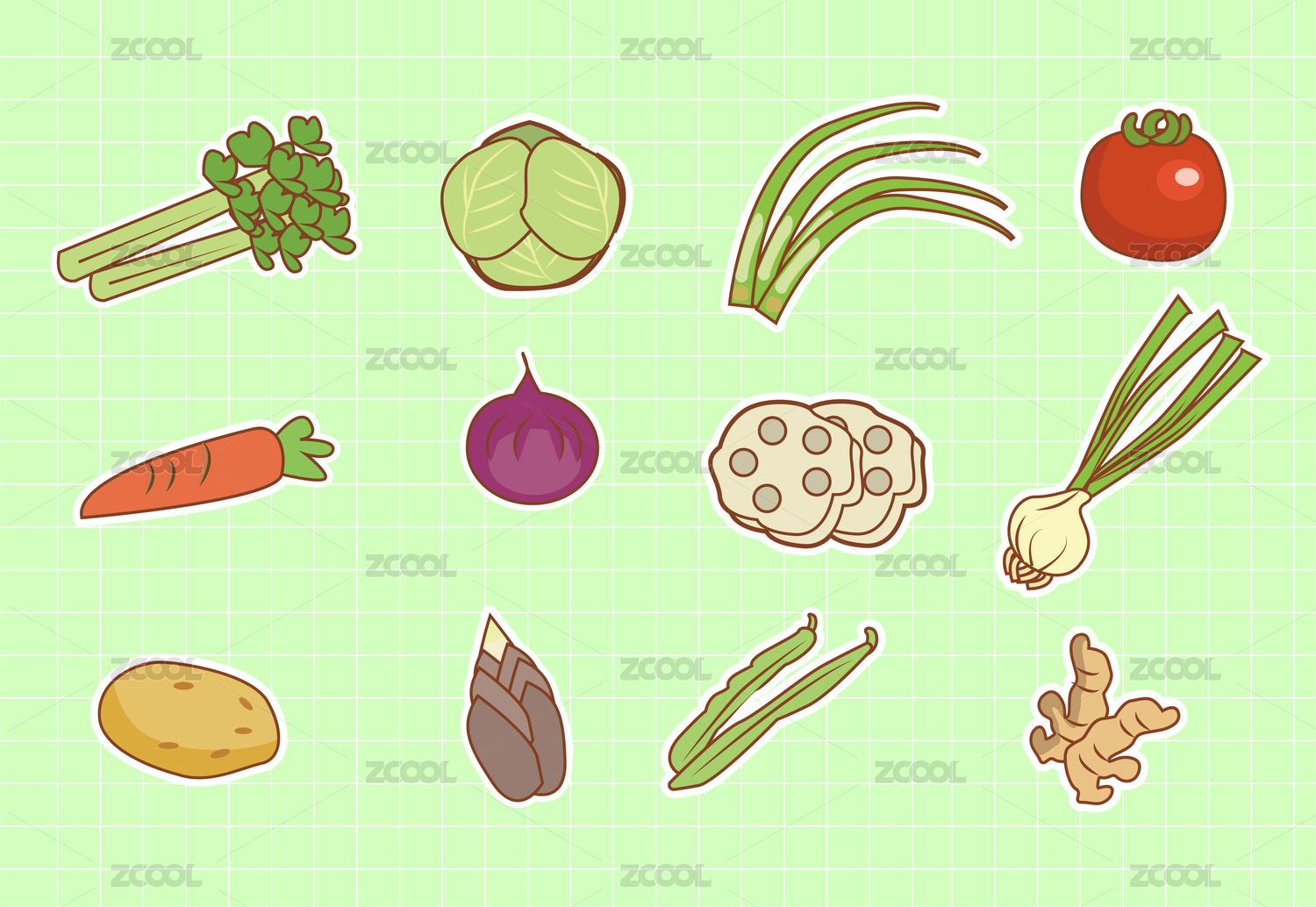 中国传统食物食材蔬菜矢量插画贴纸绘制