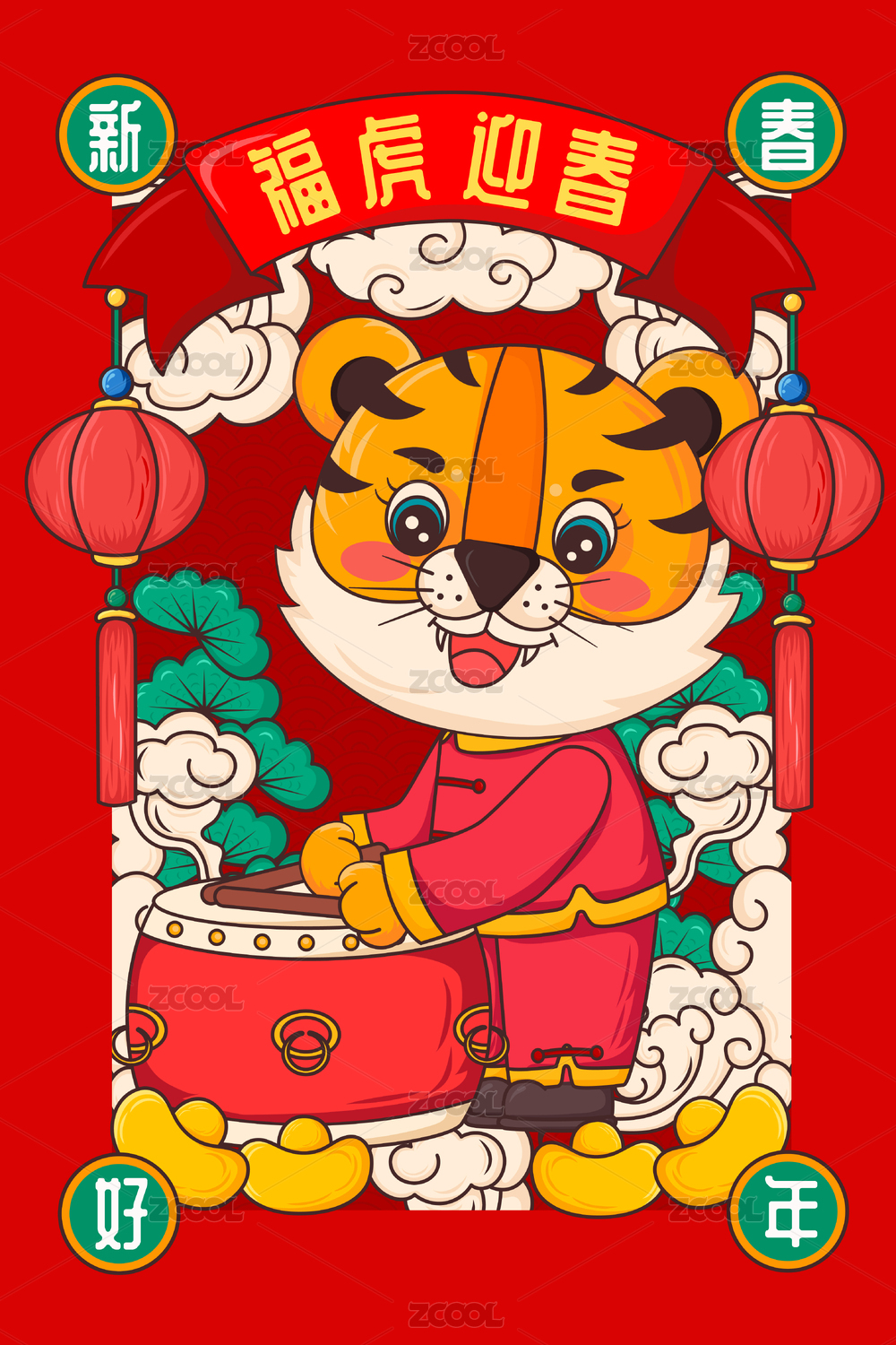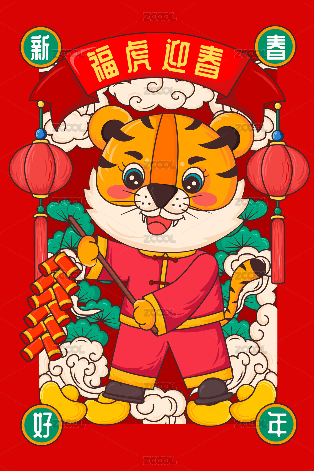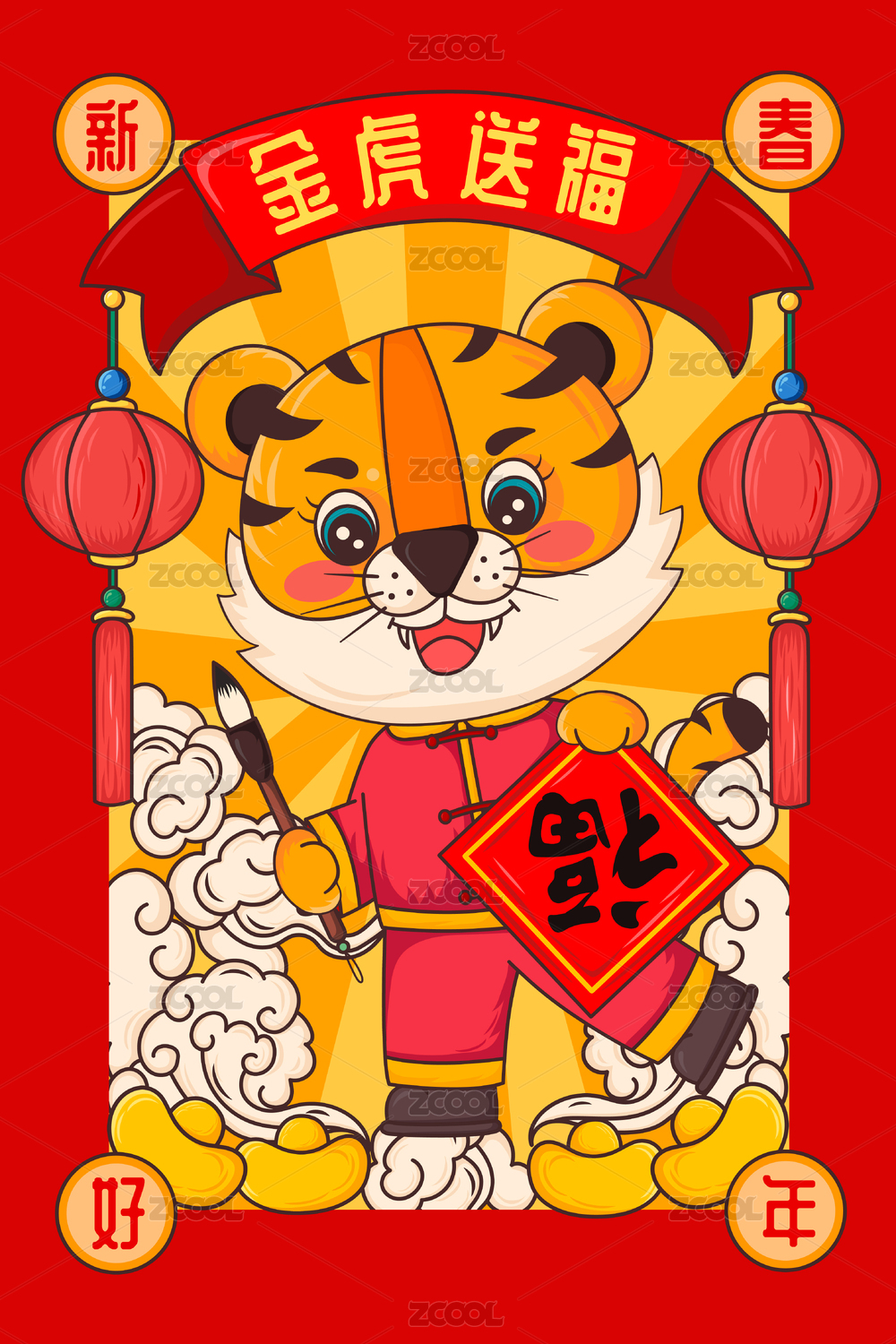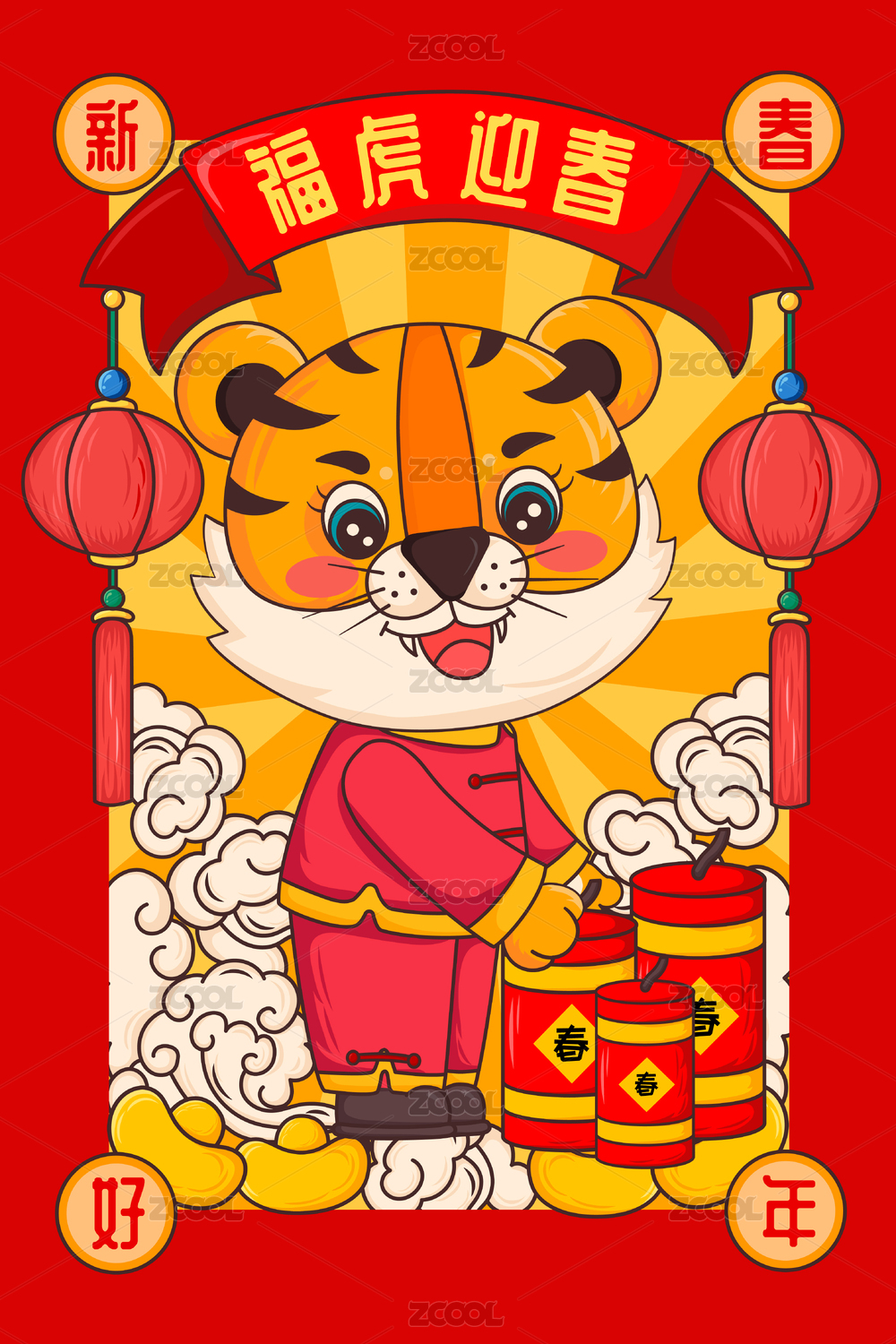 老虎,卡通,虎年,可爱,春节,新春,新年,拜年,插画,海报