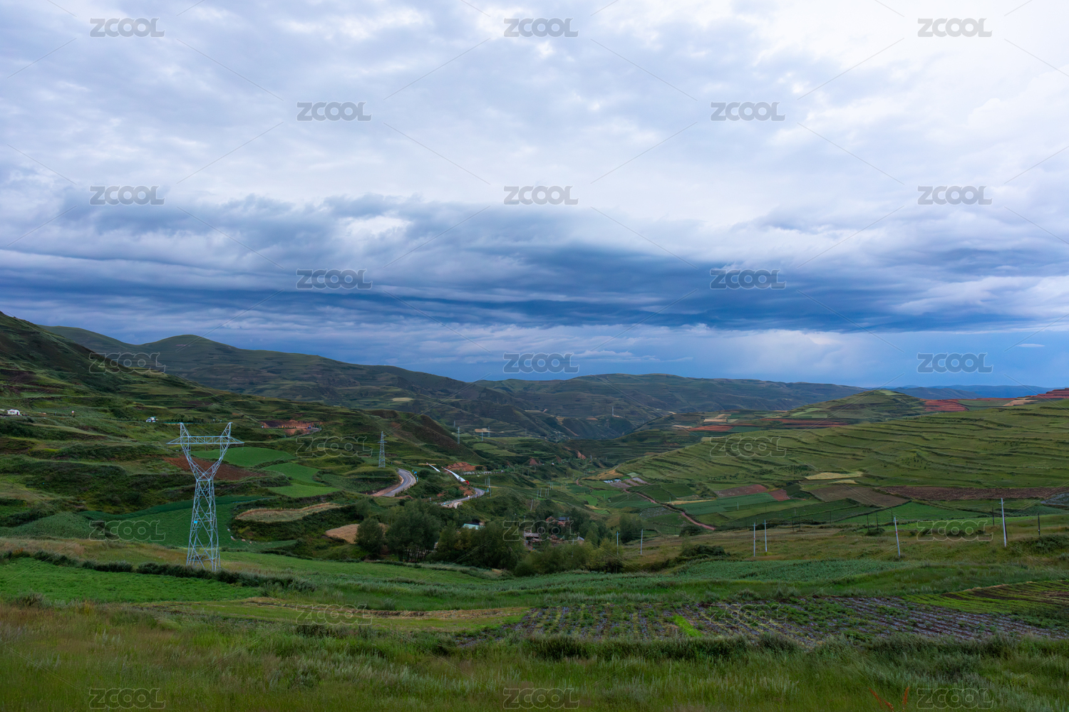 中国河北坝上草原天路梯田田野秋季无人空景蓝天白云铁塔电线电力3